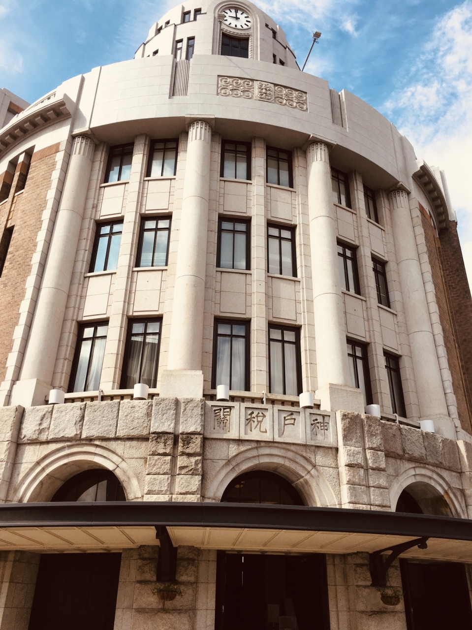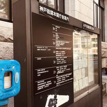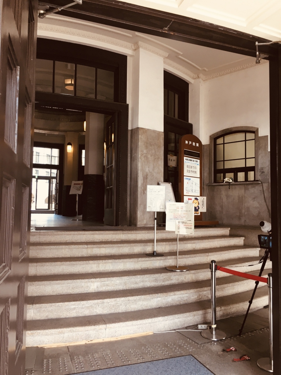 交差点にある神戸らしい洋館の建物で、正門の他に3つの門があります。8階建てで、前日までに予約すれば館内の見学も出来ます。7階までは事務所関連で、8階には、食堂と売店があります。外に掲示板があって官報のようなものがたくさん貼ってありました。