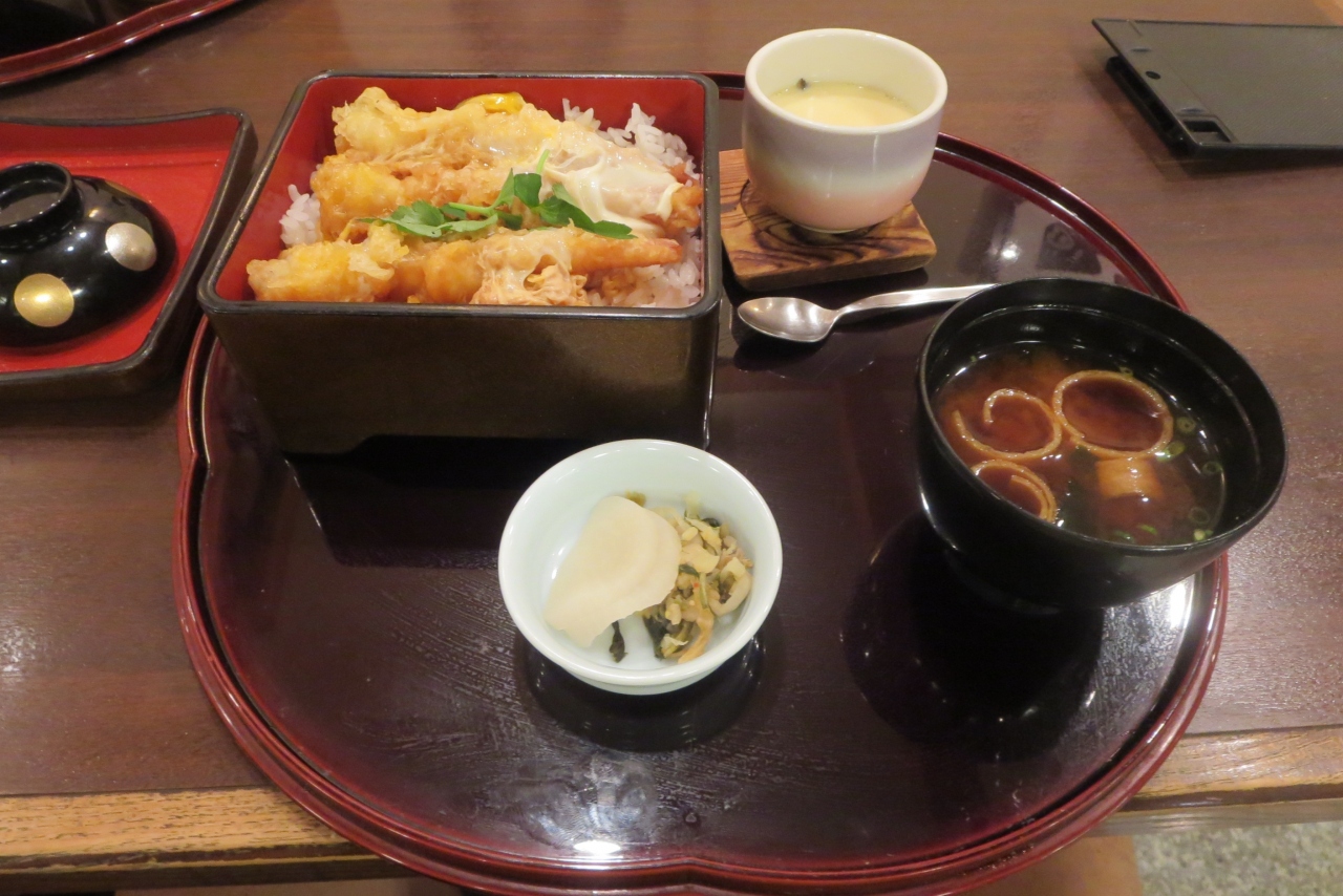 博多駅に用事があり、そのついでにランチをいただきました。店頭にサンプルがたくさん並んでいますので、ちょっと迷います。その中から「鯛めし天ぷらランチ」1080円(税込)と「海老とじ重」890円(同)を注文しました。ともに茶碗蒸しと赤出汁(お替り可)、漬物付きです。しばらく待つと配膳されました。自分は「海老とじ重」をいただきました。自分の好みよりやや濃いめの味付けですのでやや満足度は低いです。他にはお米の質を上げてもらえれば、もっと美味しくなると思いました。妻がいただいた鯛めし天ぷらランチ」を少しもらって食べましたが、こちらは適度な味付けで美味しくいただきました。