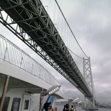 神戸から高松へ渡るジャンボフェリーに乗船。明石海峡大橋の下をくぐりました。本州、淡路島の両岸からや橋を渡りながらはありがちですが、下から見上げるなんてそうチャンスはありません。その光景は圧巻の一言。橋の巨大さを実感できます。すごかった。貴重な体験ができました。