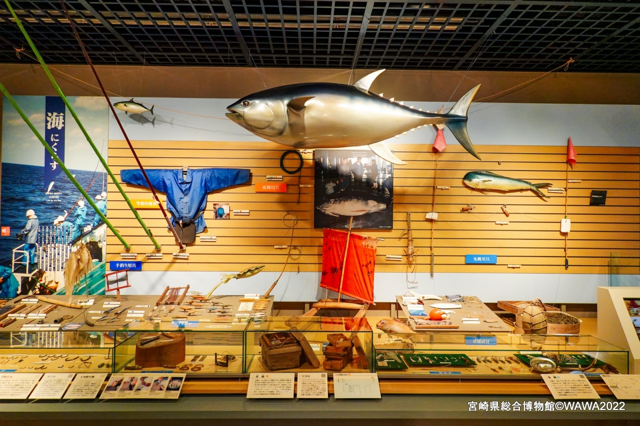 宮崎県総合博物館へは、宮崎神宮の無料駐車場に車を停めた参拝の後、広い森の小径を歩いて訪問しました。歴史民俗系を中心に展示内容は素晴らしく、興味深く宮崎県の漁業や農業に関する展示中心に見学しました。ただ、企画展「モンスター水族館」が始まる前だったため常設展のみの見学となったことが残念でした。