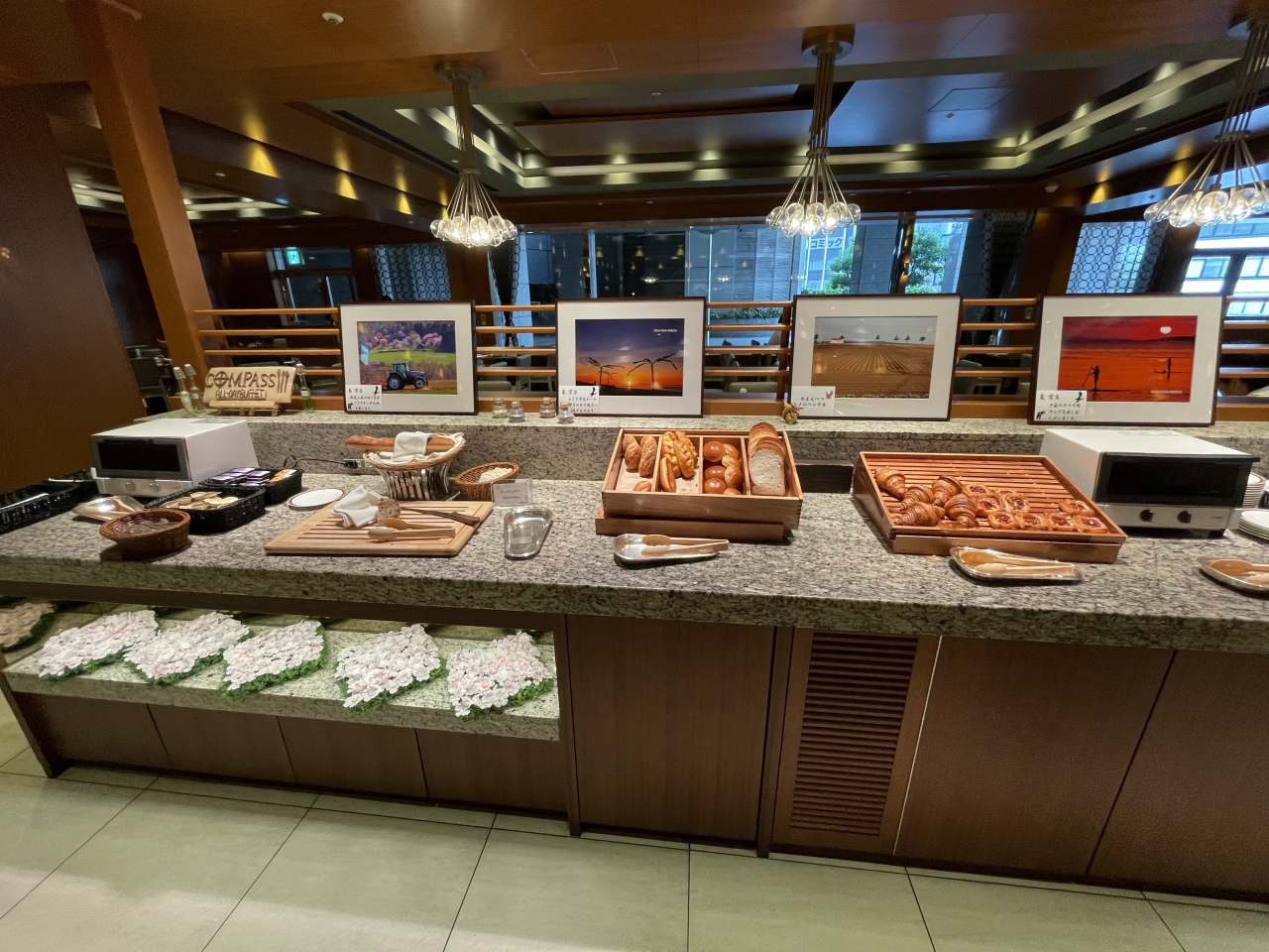 横浜ベイシェラトンに宿泊し、2階にある「オールデイビュッフェコンパス」でビュッフェ朝食をいただきました。