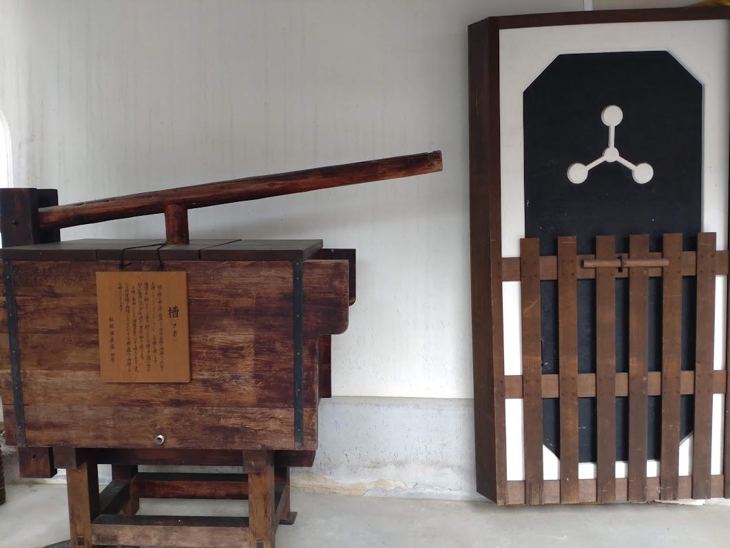 高山の古い町並みに最もなじんでいる建物と言ってもいいんじゃないでしょうか。歴史を感じる造り酒屋です。試飲サービスが人気のようですが、奥へ進んでいくと昔の酒造りの道具が並んでいて無料で自由に見学できました。
