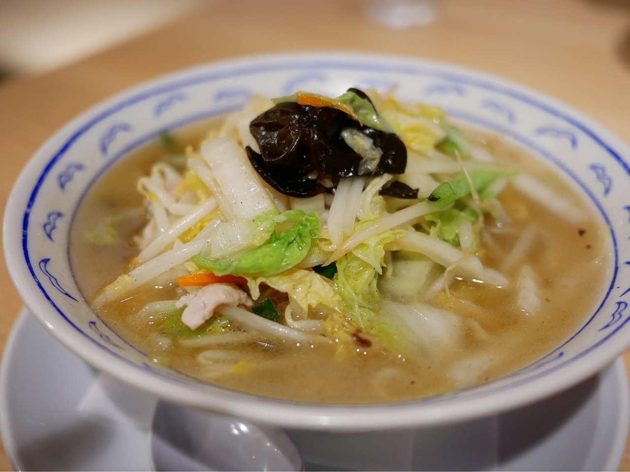 トッピングの肉野菜炒め餡の中では、シャキシャキのもやしと白菜の存在感が際立っていました。麺、スープ、野菜のバランスが良く、美味しいたんめんでした。
