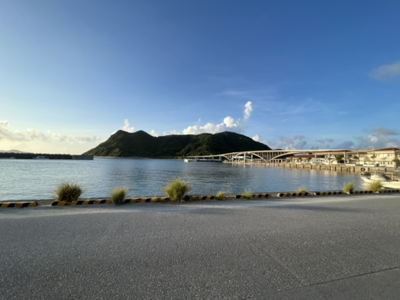 阿嘉島の阿嘉港に着くと上を阿嘉大橋がかかってます。阿嘉大橋の先は慶留間島です。慶留間と書いてゲルマと読みます。沖縄っぽいですね。人も住んでいて飲食店もあるそうですが今回は眺めるだけでした。