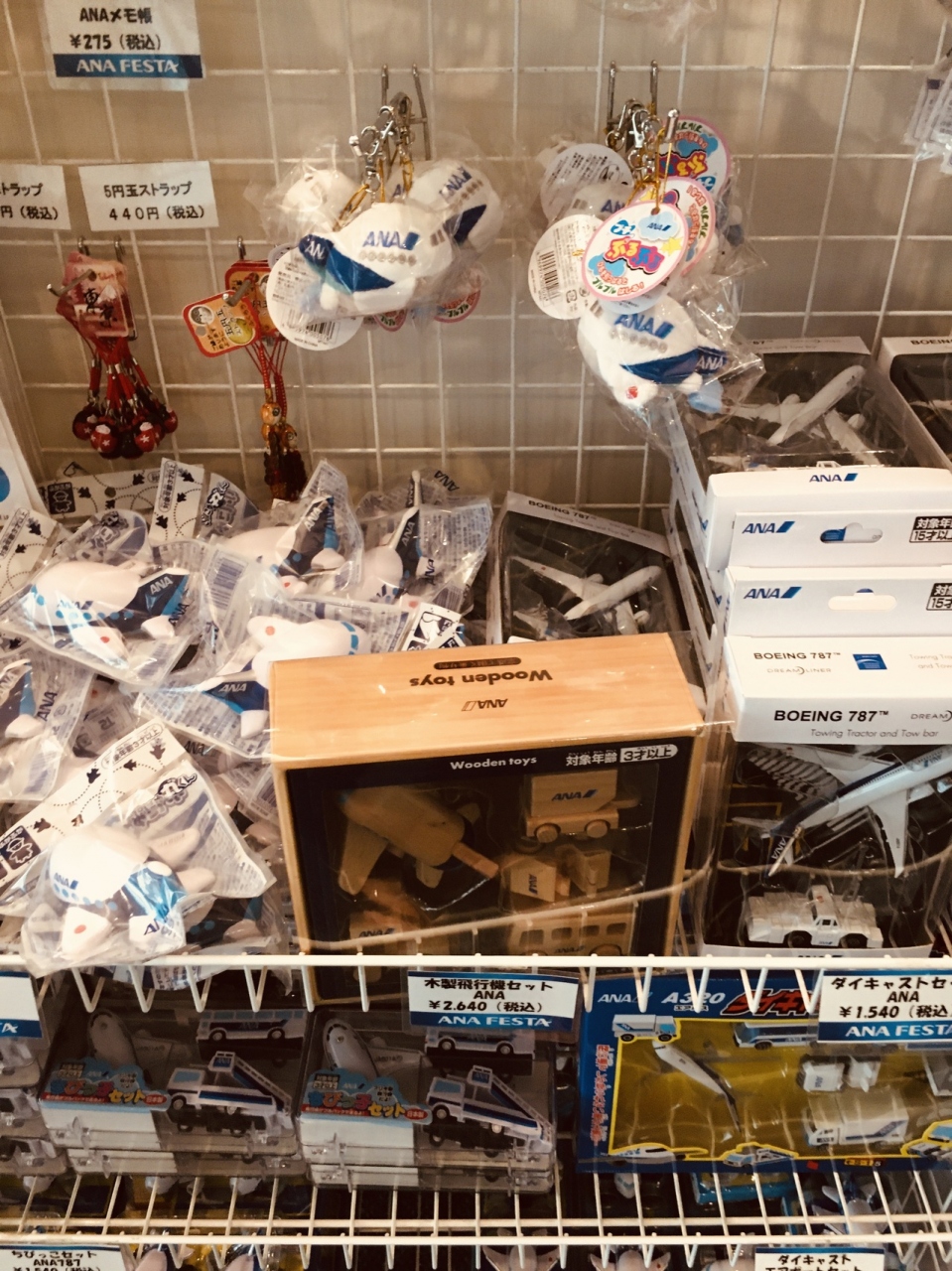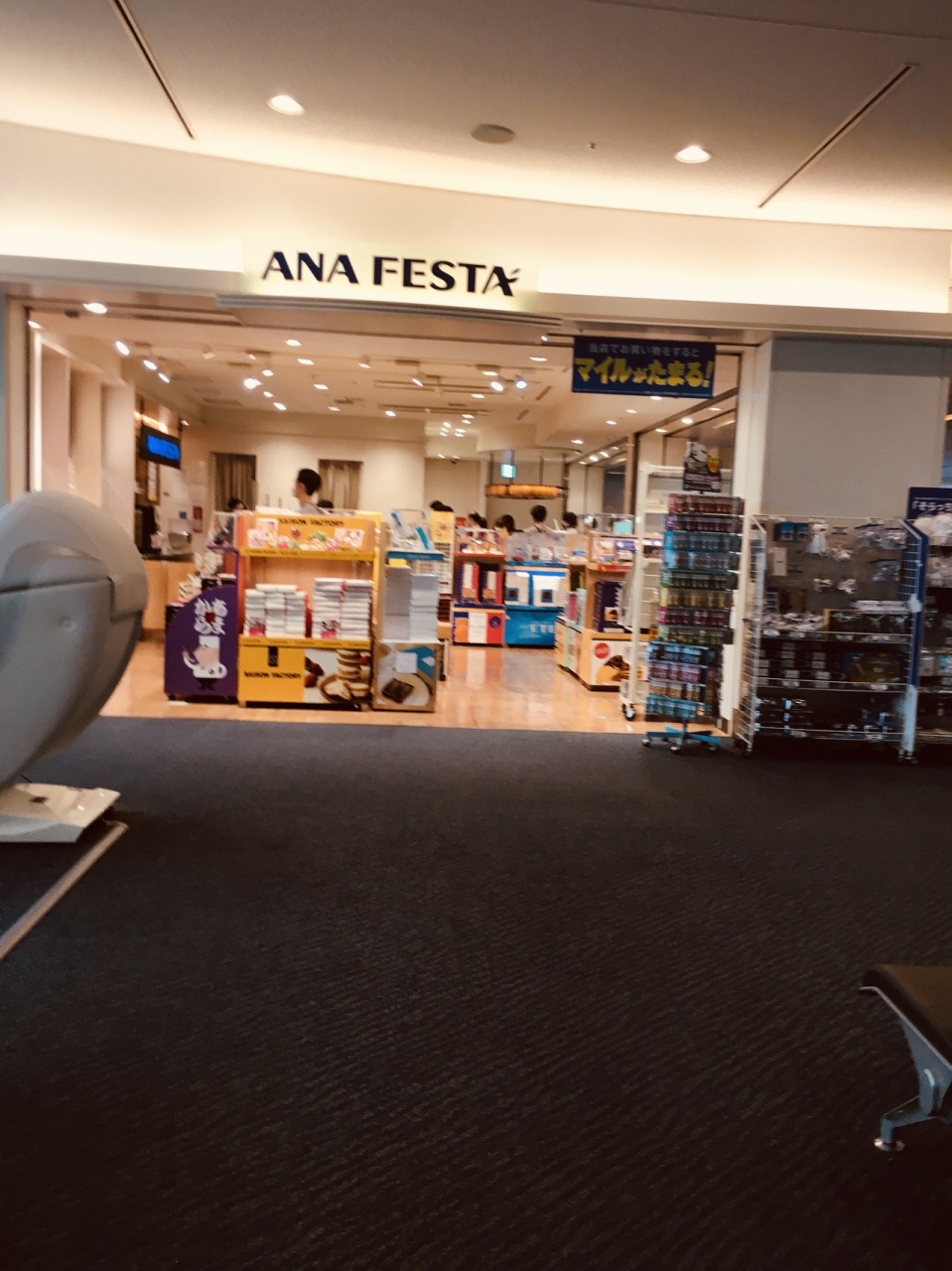 通路沿いの搭乗を待つ椅子があるエリアにあるので飛行機に乗る前に買い物が出来て便利。箱形のお土産に良いお菓子類がたくさん置いてあって、弁当コーナーには、北海道の弁当が多かったですが料金は高めでした。キーホルダー等ANAのオリジナルグッズ等も置いてあります。