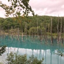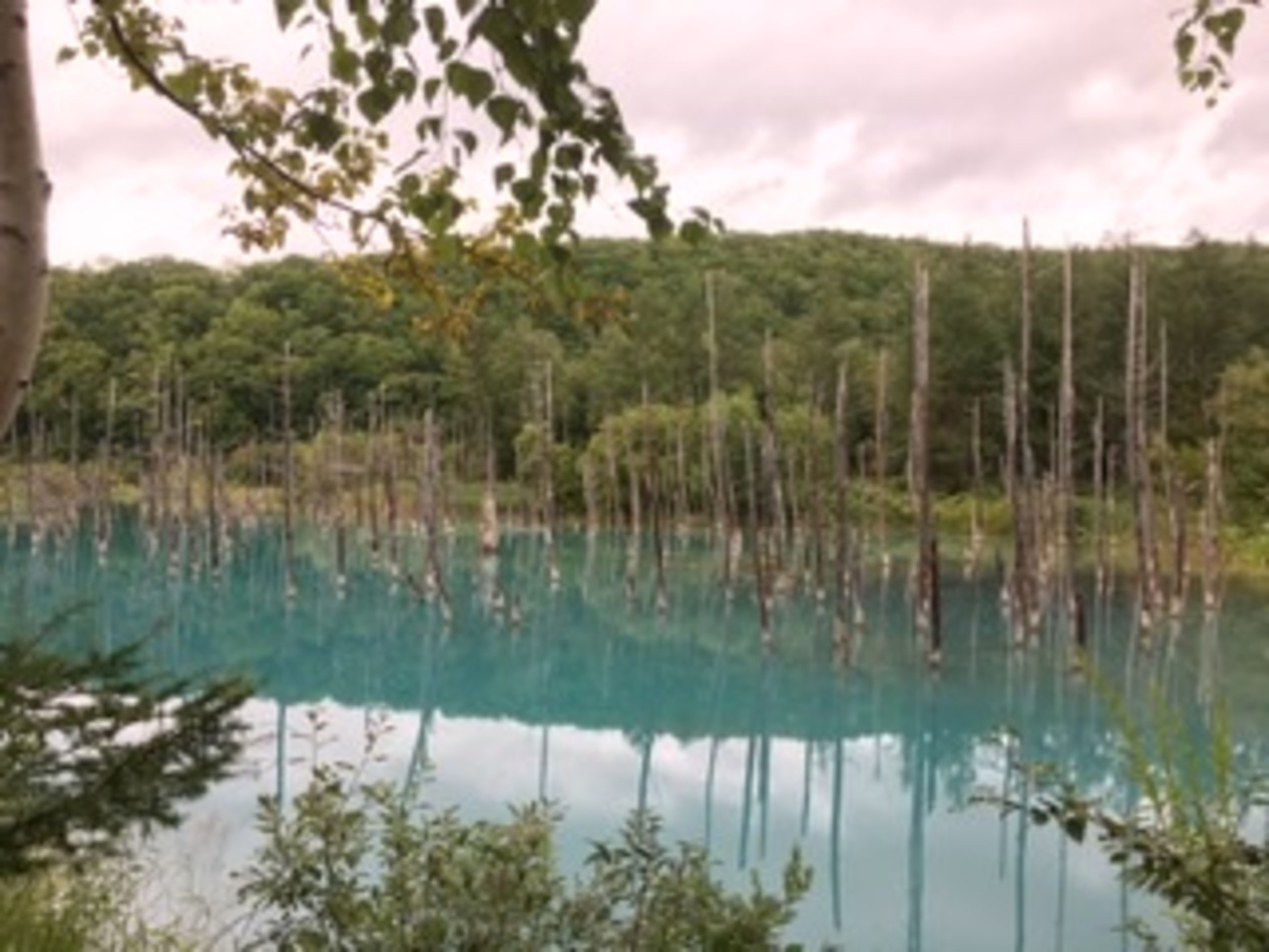 まず白金青い池に行きました。天気は曇り、時々雨が降っていましたが、着いた時はちょうど止んでいたのでラッキーでした。