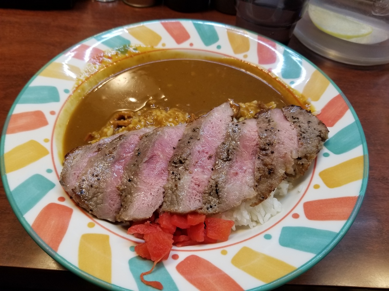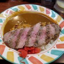 カレーライスにステーキが乗っていて、かなりリーズナブルな値段だ。味も美味しい。ただ、店内はかなり狭くて食べたらすぐに出なくてはならない。