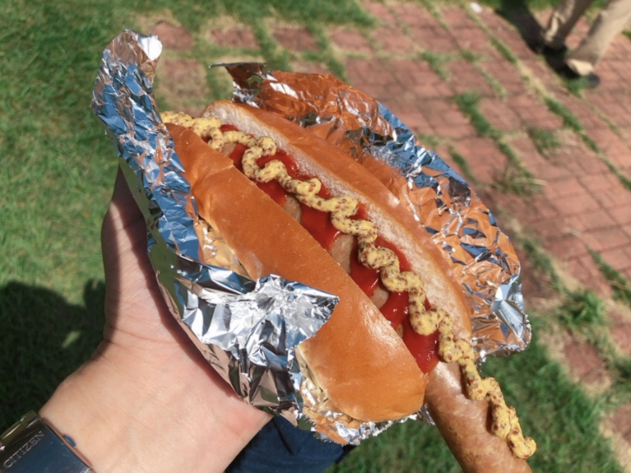 園内に入ってみると意外に広く、緑の芝生が美しい中にはたくさんの屋台が軒を連ねる。