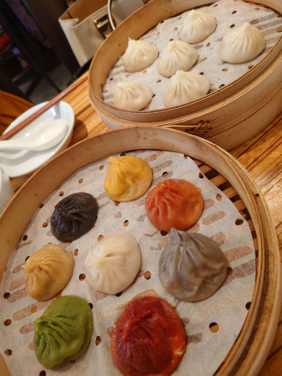 前から前を通るとガラス越しに小籠包を作っているのが見えるので、いろんな色の小籠包を食べてみたいと思っていました。普段家ではあまり美味しい本格的なしは食べられないが、昔台湾で食べた小籠包は小籠包の観念が変わる程美味しかった。日本でも鼎泰豊とかで食べれば美味しいのかもしれないが、なかなか美味しい店にも当たったことがない。この店もランチ時間に来るとお得に食べられるという事で、ランチにきてみました。何か主食とセットでお得になっていました。小籠包としてはまぁまぁかな。一般のお料理もクセがなく無難で美味しい。銀座と言う場所を考えるとお得なランチだと思う。いろんな色の小籠包は野菜やニンニクそれぞれの味が確かにする。皮はモチモチしている。店内はそれ程広くはなく中華料理にしてはテーブルが狭い。他に部屋があるのかわからなかったが、ランチ時はいっぱいになっていた。