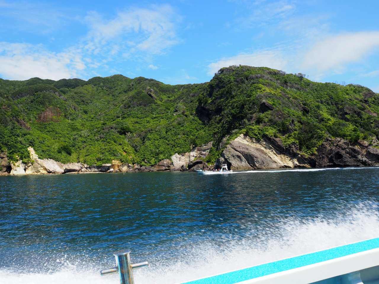 今日は海の状態も悪くないし、空いている方だよ、と係の方から勧められ、ポップアップテント、小さなアイスボックスに飲み物とパン(自分達用です)を入れて12時半過ぎから船に乗ってヒリゾ浜へ行ってきました。