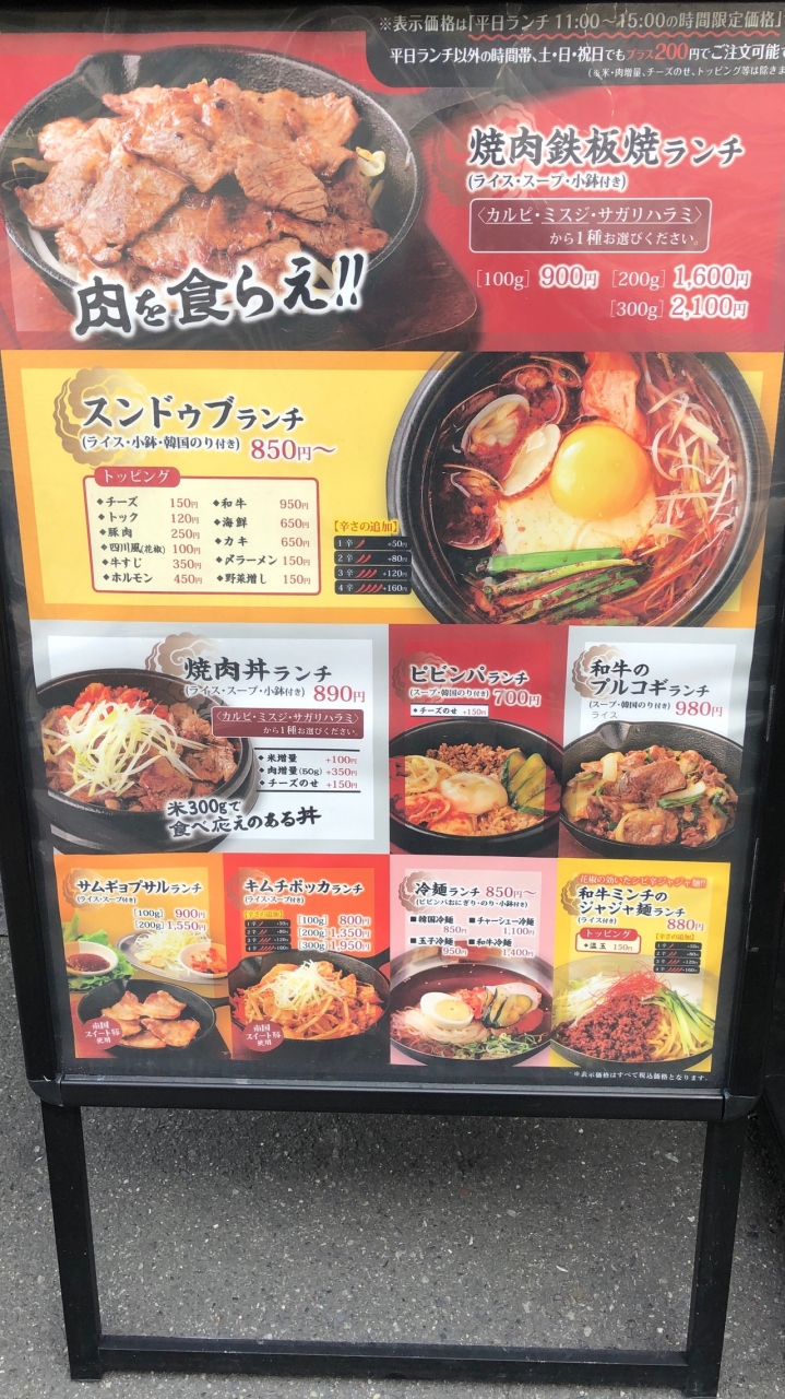 2022年にオープンした韓国料理店です。細長い店内は、カウンター席が中心です。フードメニューは、平日11~15時以外は200円増しになります。なので、平日昼の来店がお得です。今回は、焼肉丼ランチ890円を食べました。注文後に焼き始めるので、提供まで少し時間がかかります。
