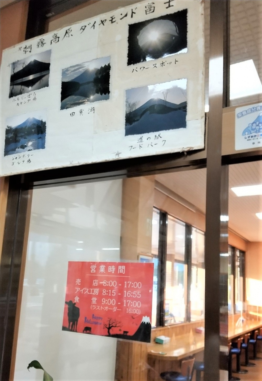 施設内にはレストランやお土産ショップ、野菜の直売スペースなどがあり、色々楽しめます。気温は低く、その名の通りよく霧がかることが多い場所でもありますが、近隣は富士山の絶景スポットになっています。