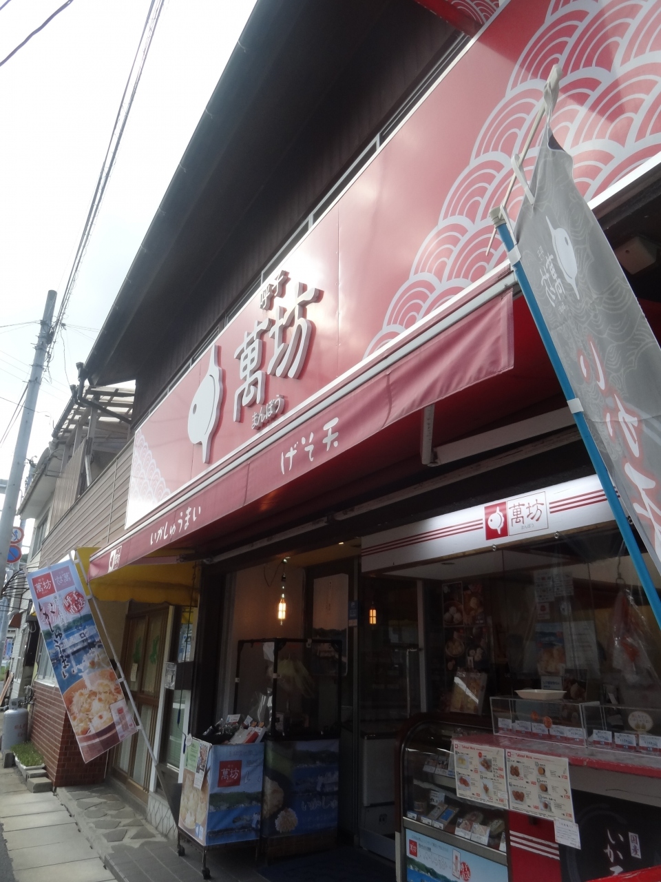 ここの萬坊さんは、呼子の朝市通りバスセンターからもすぐのところにあります。有名なイカシュウマイがお手軽に食べれます。店内には席があまりないので、混んでいると座れないかもです。人気のいかシュウマイは柔らかくてとても美味。味付けの醤油(だし?)とからし非常によく合います。