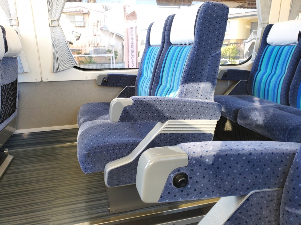 今回は展望席の前から二列目に座りました。展望席はハイデッカーになっていて下には運転席があるので小田急ロマンスカーとは反対の構造です。高さがある分展望も良いですし、ガラスも大きいものを使っているので解放感がすごくあります。