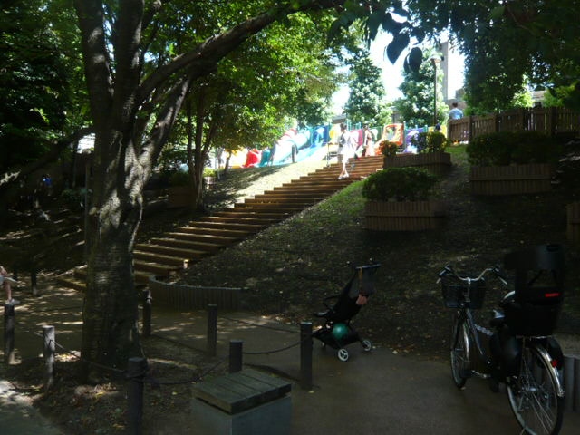 さくら坂公園は、六本木ヒルズの南側に位置している港区立の公園で、斜面を巧みに活用しています。