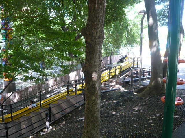 公園としての敷地面積は、それほど広いわけではありませんが、緑の樹々や遊具そしてインディアンボールトも思える木材彫刻により、刺激的な環境と感じさせてくれます。