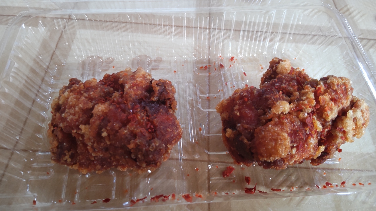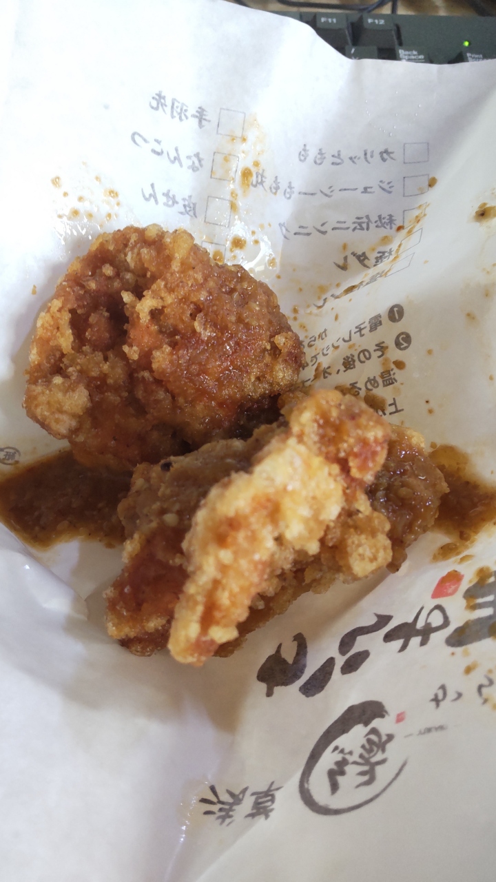 唐揚げはニンニクのモノは旨味があって美味しかったです。が、赤カリはなんだか唐辛子だけ振ったような感じでアイディアもないような感じでイマイチでした。