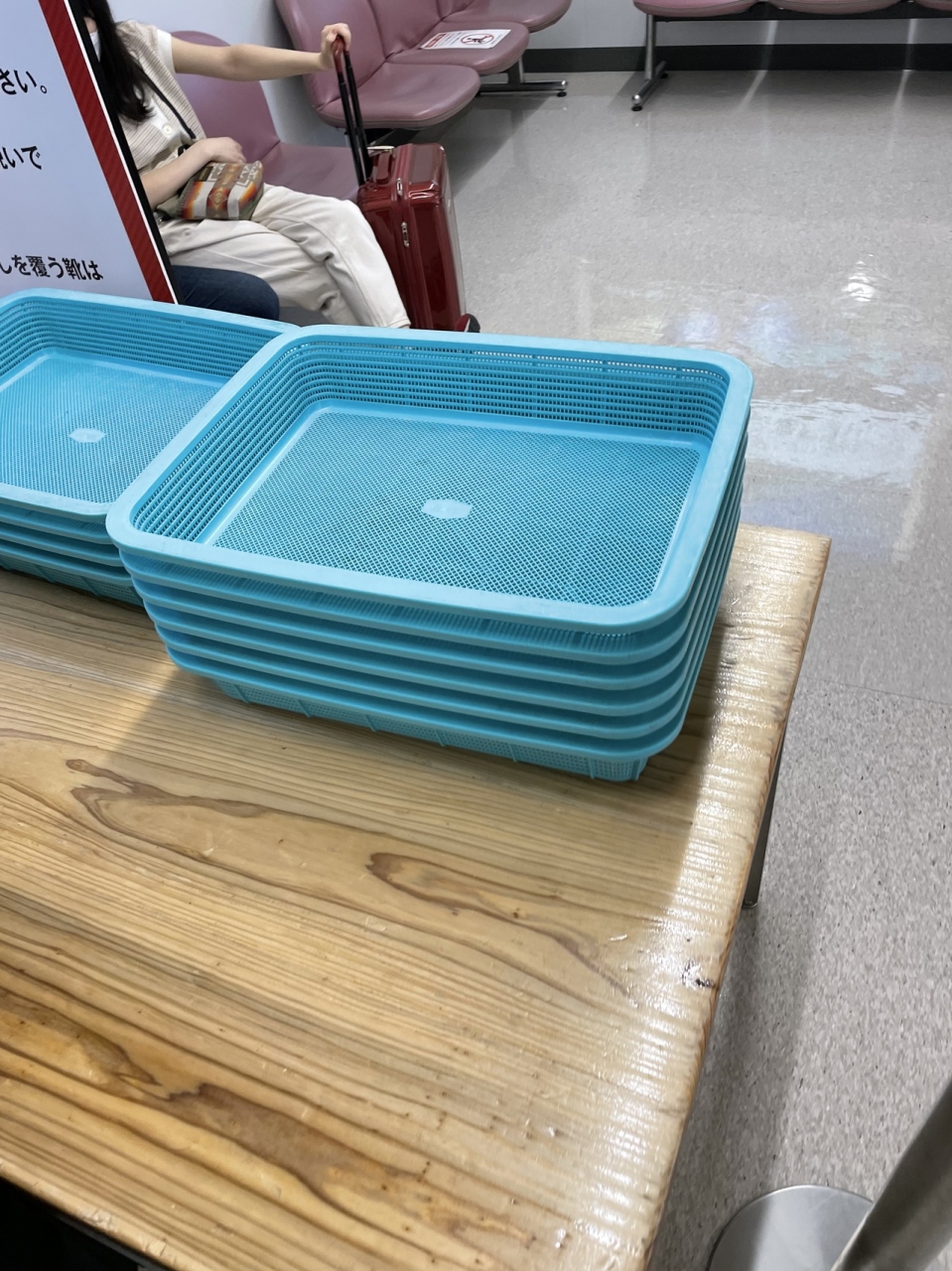 あと、何分で締め切りますとしきりに放送が流れていますが、利用者として何故かというと検査場の動線につきます。AからCまでの検査場がありますが、Aには普段、荷物検査場ギリギリにしかトレーがなく検査場1メートルにトレーがありそこでパソコンなどを出すために年中渋滞。何回アンケートに書いても改善されない空港で残念。ただ夏休みは置いてある。なんだかな