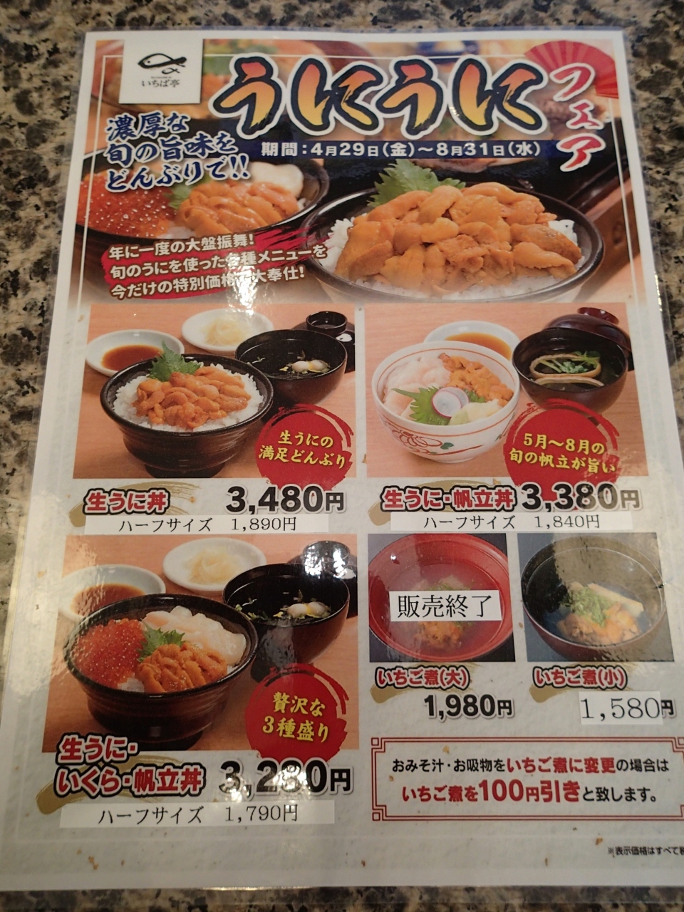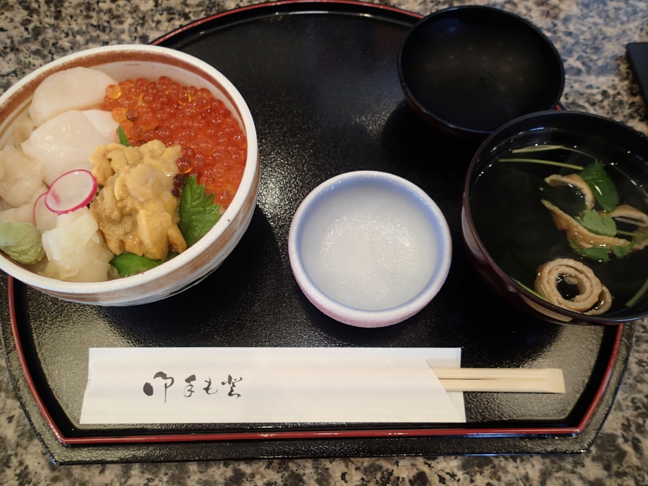 うにフェアを開催していたので、うに、いくら、ほたての三色丼を頂きました。あまくて、とろけるおいしさでした。
