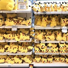 正面のピカチュウぬいぐるみだらけの陳列棚はかわいいです。