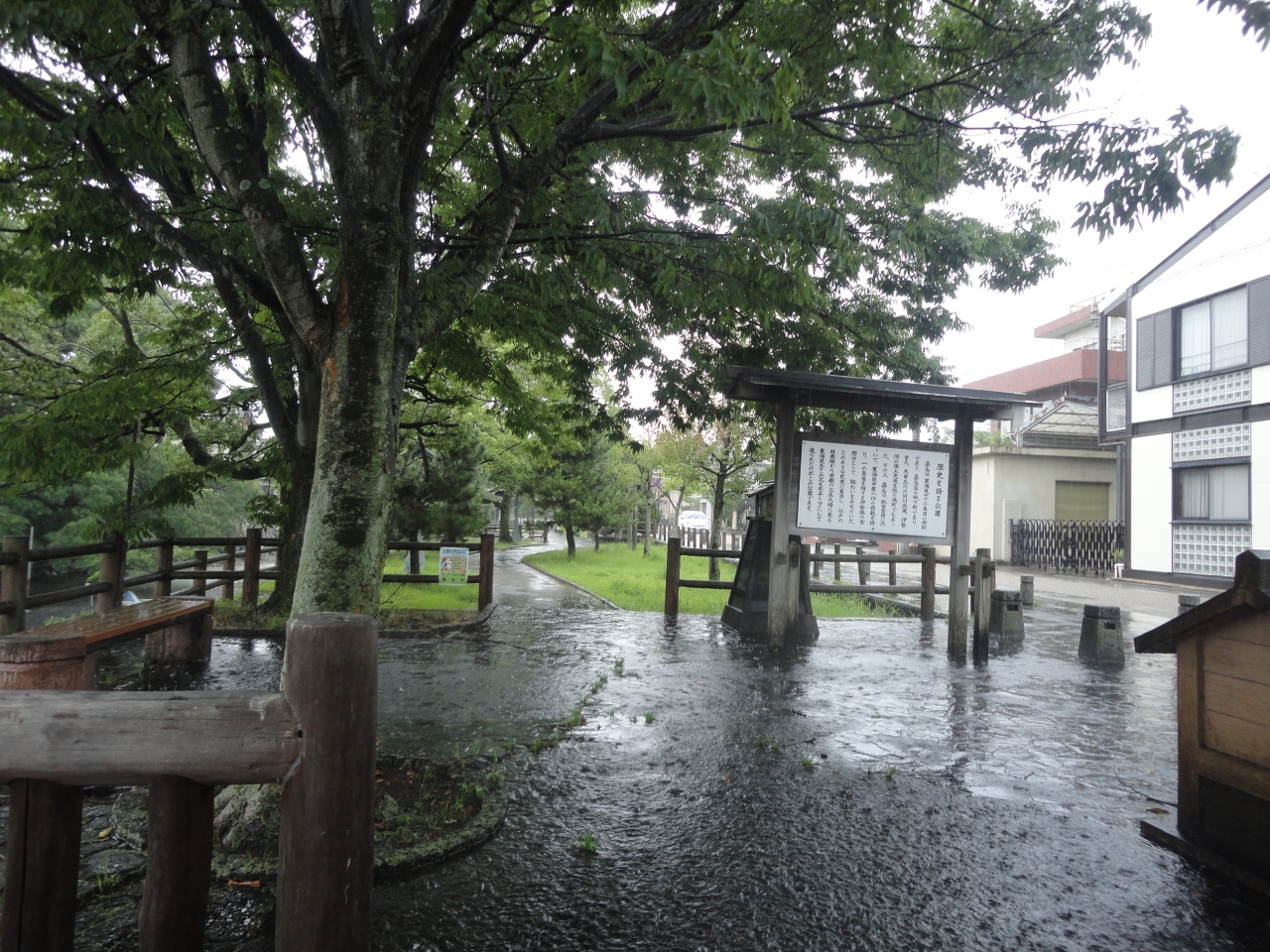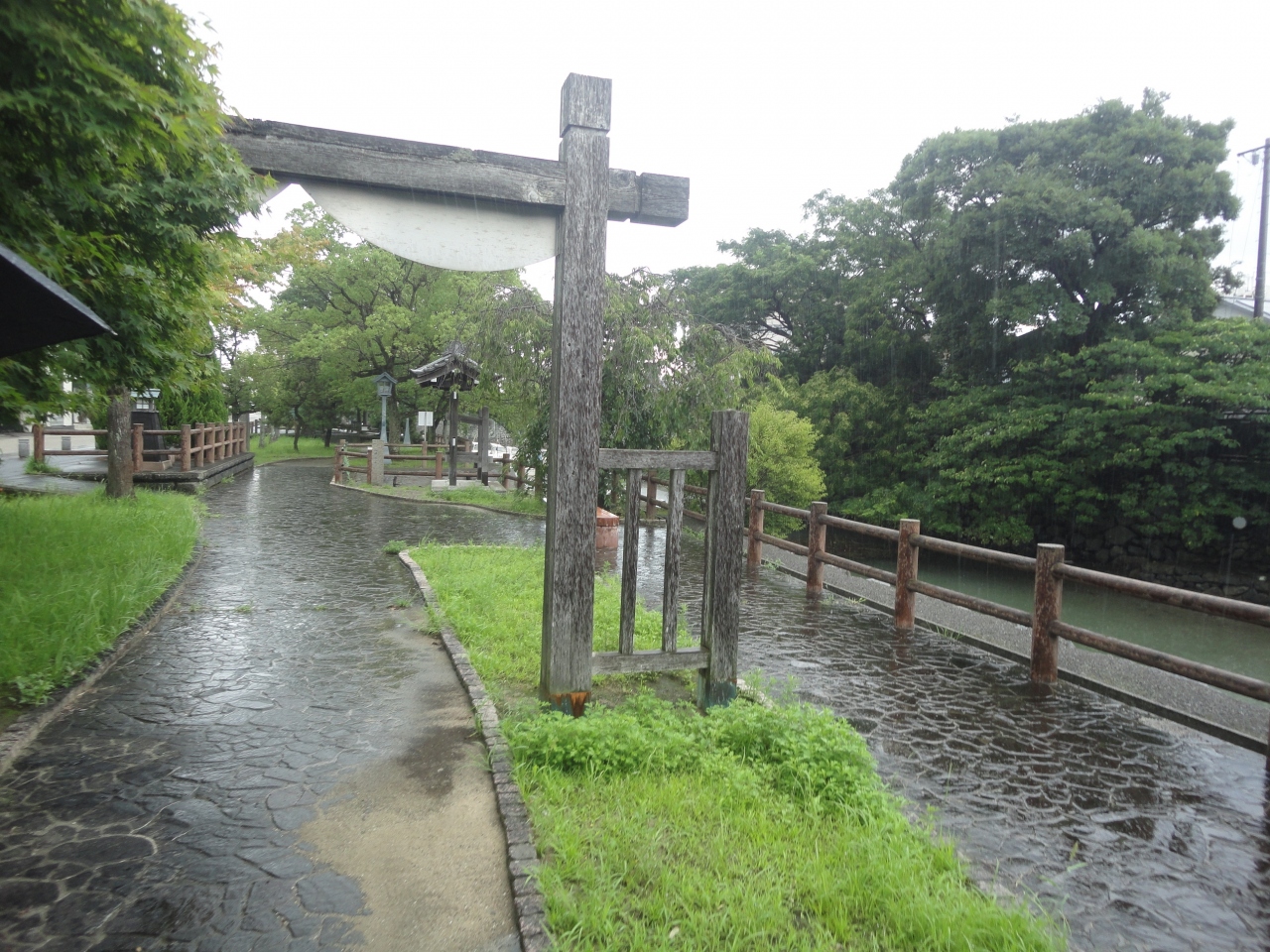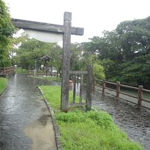 桑名城跡の九華公園より1ブロック西側、三之丸地区の外側のお堀に面した公園です。松が植えられていて、石畳の歩道が風情がありました。桑名宿は東海道の宿駅ということで、日本橋などをモチーフにしたものが公園内に置かれていました。