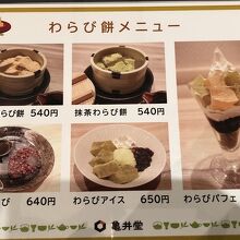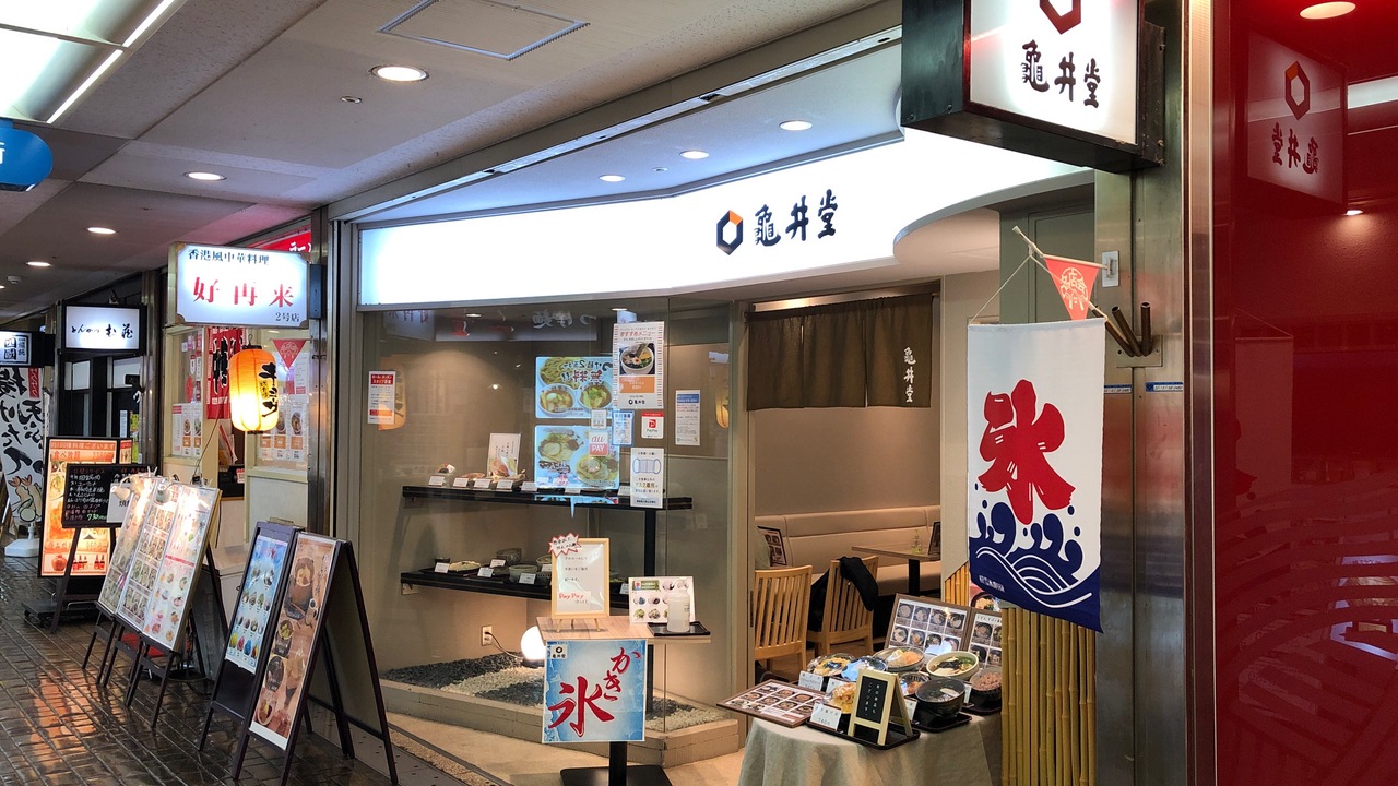 神戸銘菓の一つ・瓦せんべいで有名な亀井堂の甘味処です。神戸に数店舗るようで、さんプラザ店はB1Fにあります。わらびアイス650円を食べました。わらび餅は、きな粉・抹茶から選べます。どのメニューもお手頃価格でした。