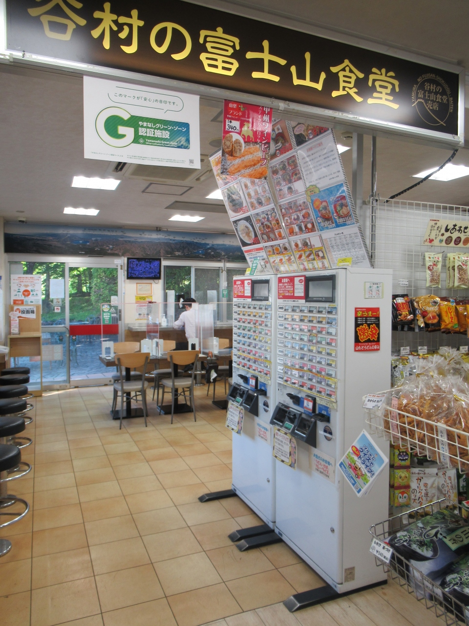 大月JCTから河口湖ICの途中に造られている、谷村PA内に設置されている食事処です。富士山食堂と名付けられたこじんまりした食事処ですが、店内では山梨県の郷土料理の富士桜ポーク定食や吉田うどんなどの他、赤富士ラーメンや富士山カレーなど50種類ほどの料理が味わえます。食事処の隣に造られた緑豊かな緑地には、テーブルや椅子、ベンチなども設置され、緑に囲まれ食事をすることもできます。