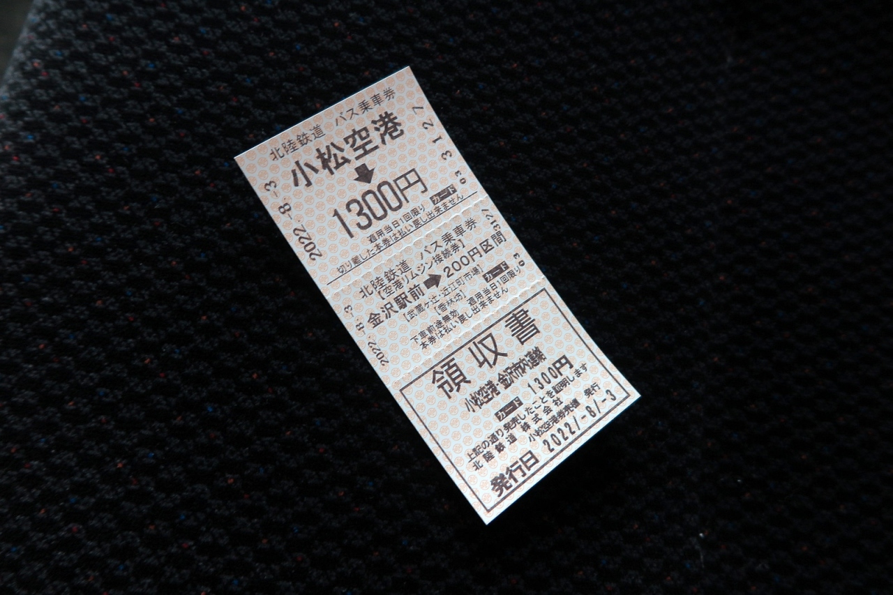 「小松空港」からは200円区間付、復路の使用可になればなぁ…