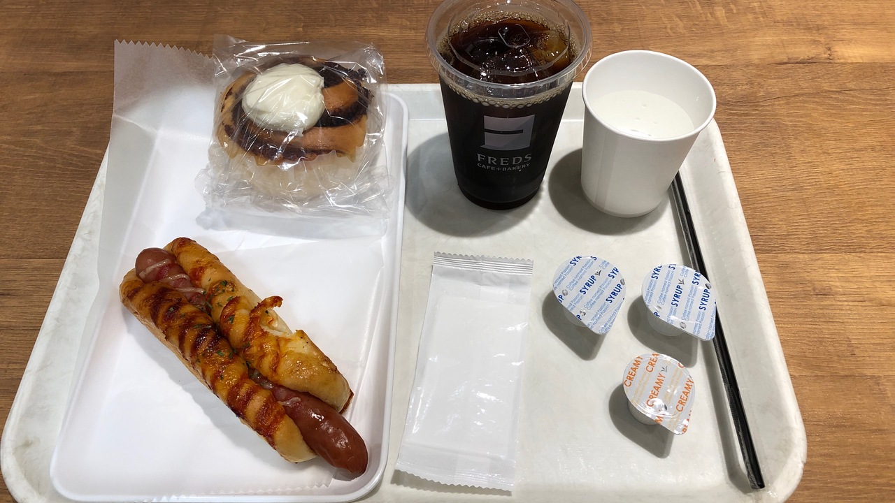 十三駅2F、乗り換え通路にあるベーカリー・カフェです。阪急沿線にあるフレッズカフェの中では、広めの店舗です。コンセント付きのカウンター席、ソファ席などがあります。毎日1杯コーヒーがいただけるサブスクも始まりました。