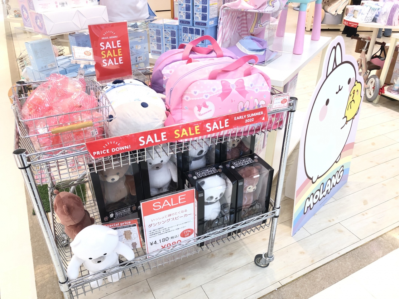 かわいいグッズが廉価で買えるこのお店。セール品もお店の入り口隅の方にありました。しろたんグッズも健在です。