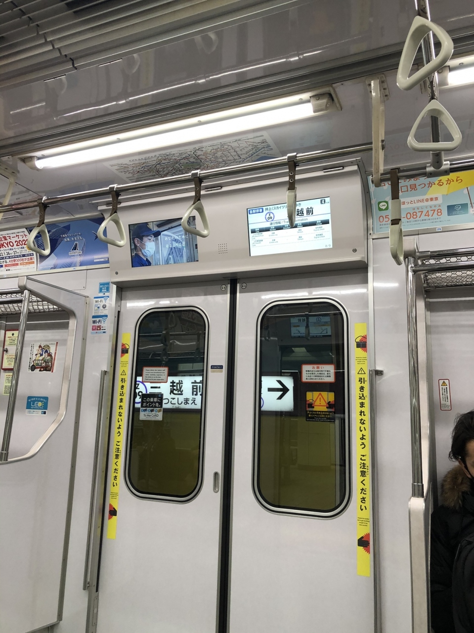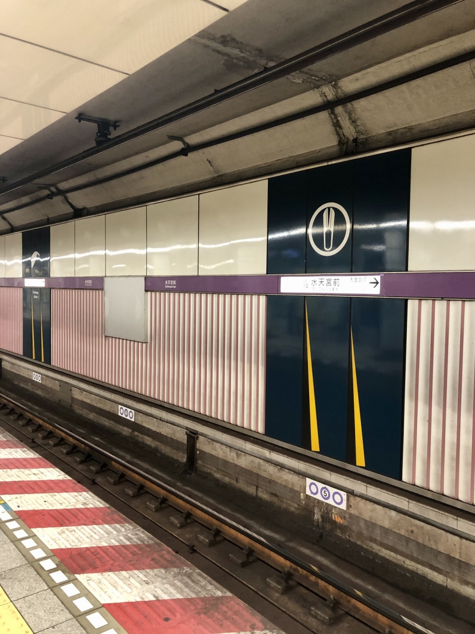さっき乗った銀座線のド派手車両と比べるとシンプルなパープルラインが良いね。