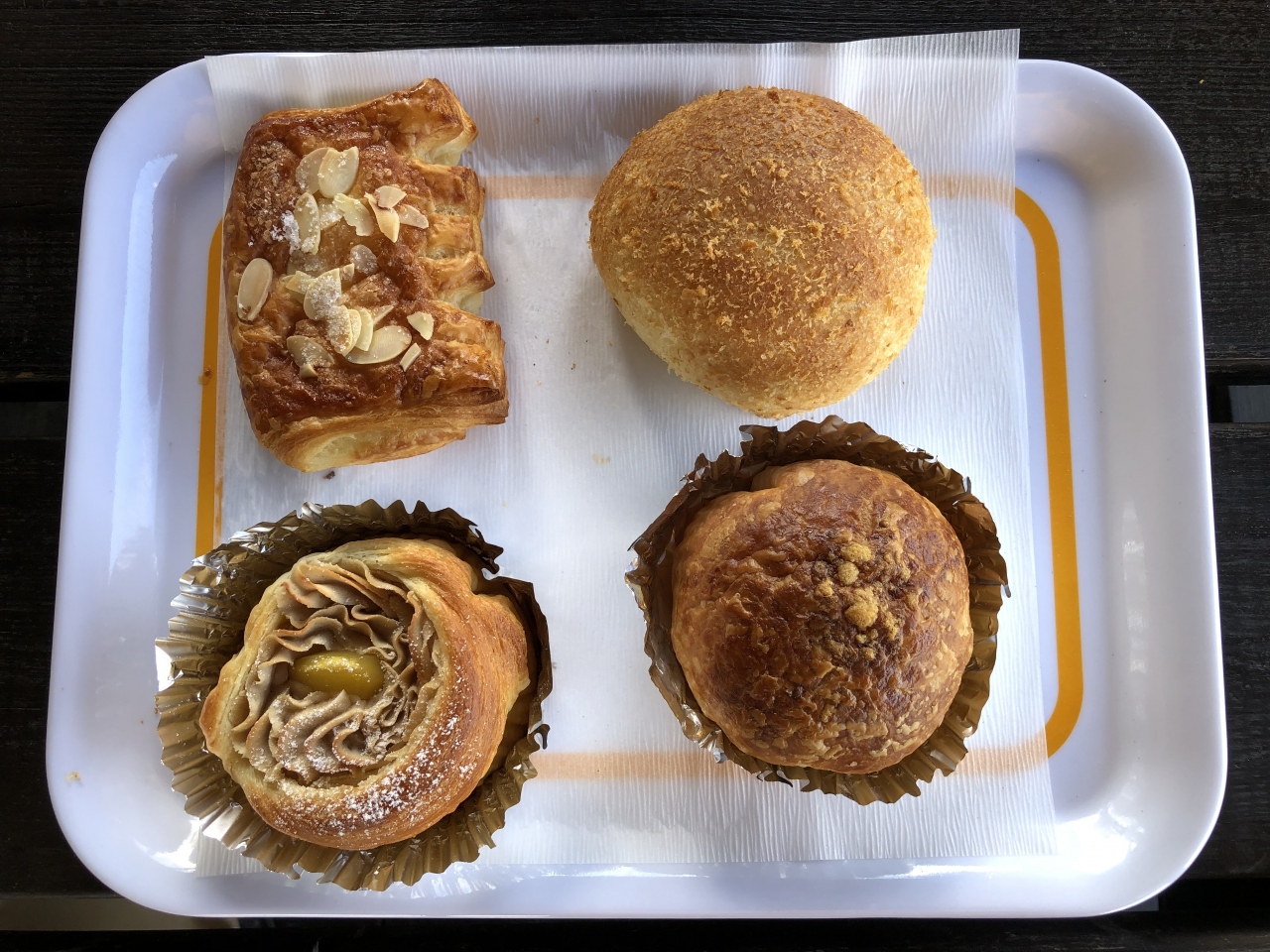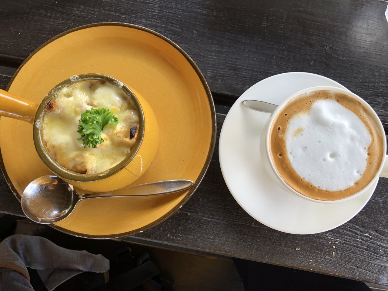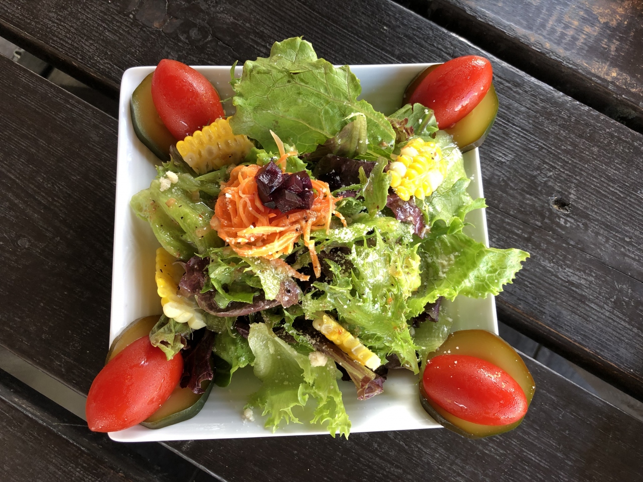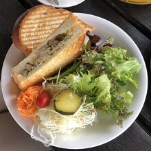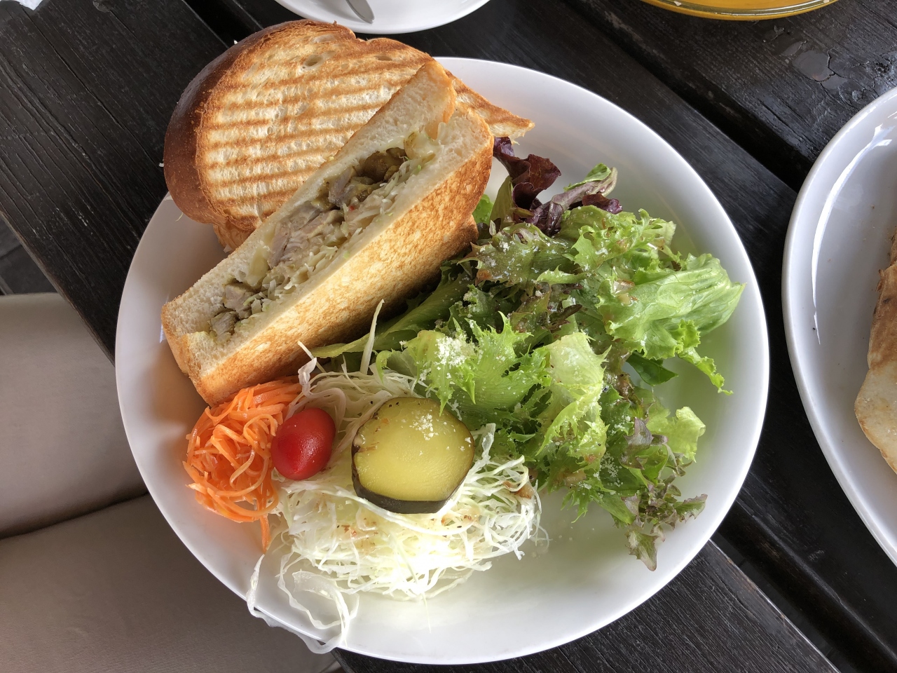 家族とエピで朝食をしました。シーズン中はいつも開店前から並ぶくらい混んでいたので、少しずらして行くと2組しか食事をしていませんでした。テラス席に子ども含めて5人が座りました。煮込みハンバーグ、ピザ、オニオンスープ、サラダ、タンドールチキンホットサンド、デニッシュなどを注文しました。空いていたので、料理はすぐ運ばれゆっくり食事をしました。サラダのトウモロコシが甘くて美味しく、タンドールチキンの付け合わせのサラダは単品サラダとほぼ同じ内容でボリュームがありました。徐々に客がきましたが、パン購入の人と食事の人と半々でした。皆がゆっくり食べ終わるまで、ドッグランで孫と走り回ることができてよかったです。毎年来ている家族はエピの料理とパンは美味しいと気に入っています。
