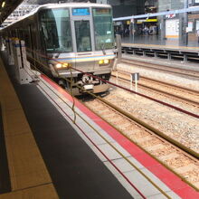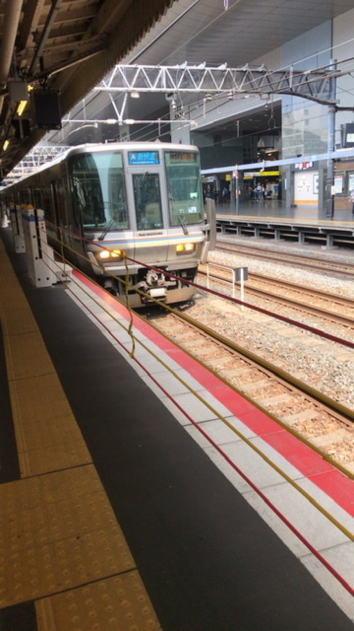 京都駅から長浜駅まで乗車。転換クロスシートの223系、座れて快適でした。