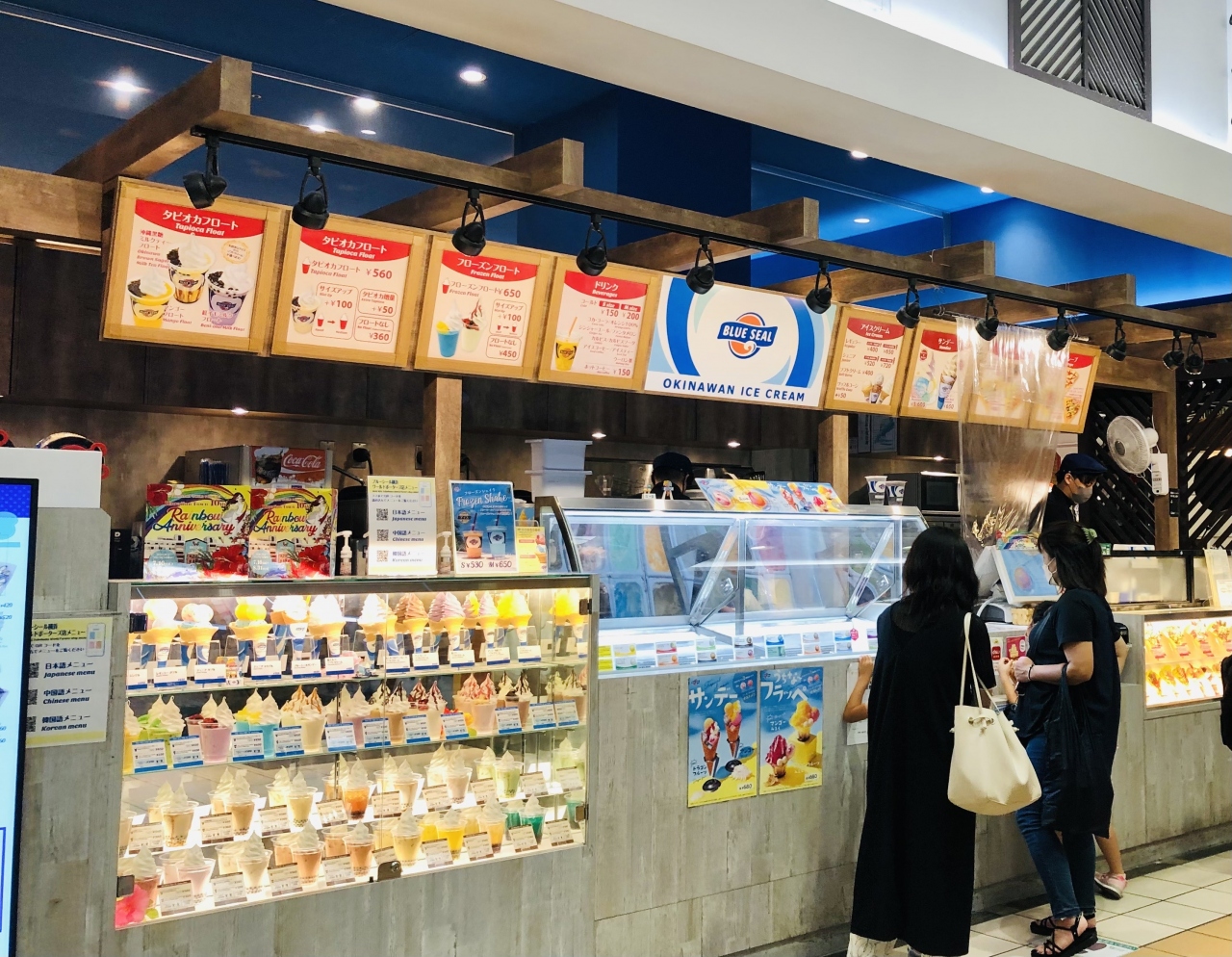 コールドストーンは恐ろしい勢いで閉店していますね。サーティーワンとブルーシールはそんな感じはなさそうです。二社の大きな違いはブルーシールはアイスだけではなくクレープや、サンデー、フラッペと豊富なことでしょうか。ワールドポーターズのハワイアンタウンにあり、まさしくアメリカ生まれの沖縄育ちといった感です。