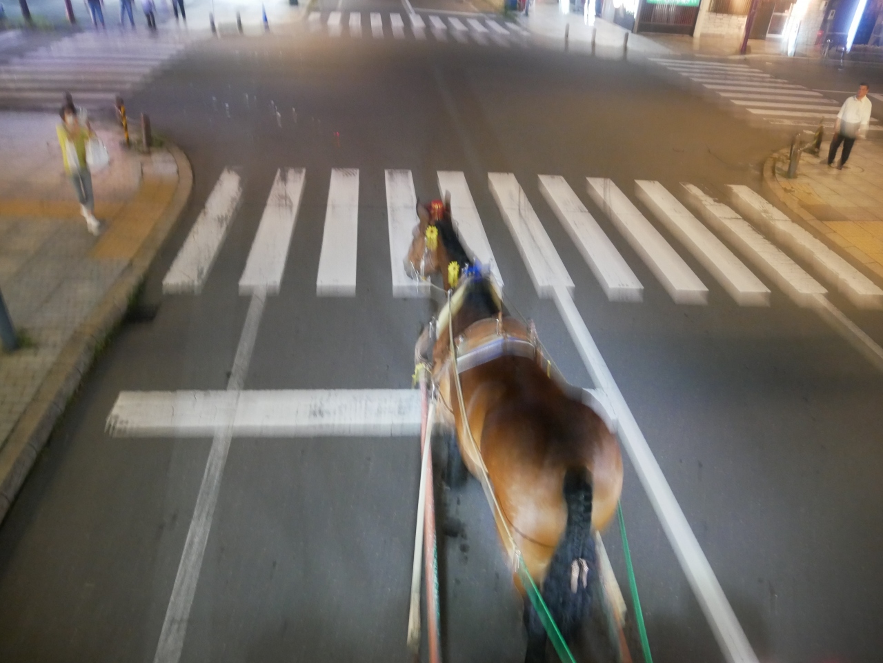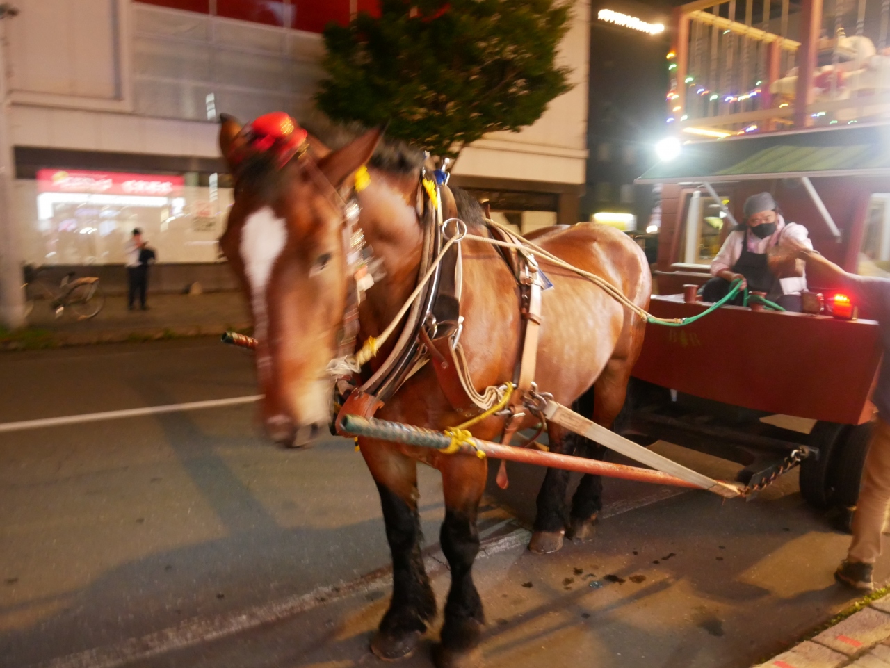 馬車バーという名前です 週4回で1日6時.7時.8時の3回催行3300円で1ドリンクとつまみがつきます ホテルヌプカに集合場所けん予約です 1回12人までHP予約しないと乗れません 中心部散策でばんえい馬がめぐります