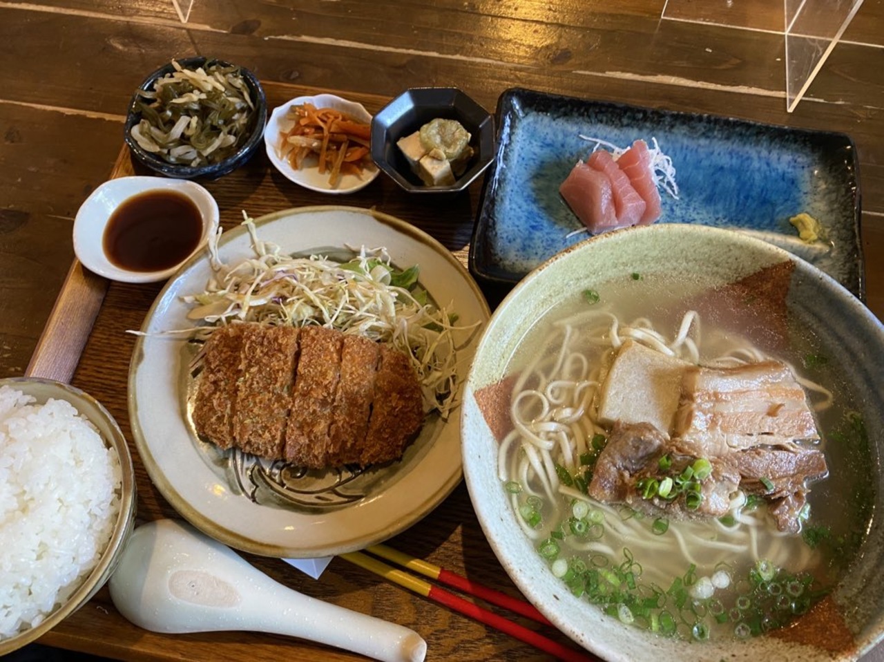 沖縄そばはおまけ程度かと思いきやまさかの標準サイズで、さらにご飯は大盛りと、量が多くて食べきれませんでしたが、これで1000円以下ってのはお得ですね。