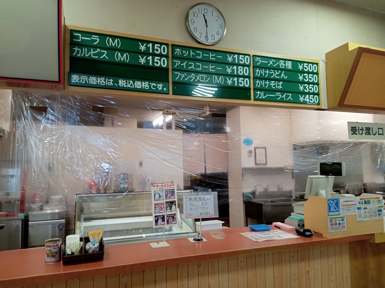 北広島駅の斜め向かいにあるスーパーの中にある食堂です。メニューは、ラーメン、そば、うどんにカレーと少ないです。ラーメンを食べましたが、味は普通かなと思いました。しかし、周りにはお年寄りが食事をしていて、地域住民の憩いの場になっている感じです。フードコートのような場所があって、そこで食べるのですがみんな楽しそうに、食事とおしゃべりをしていました。こんな食堂も必要なのだと感じました。