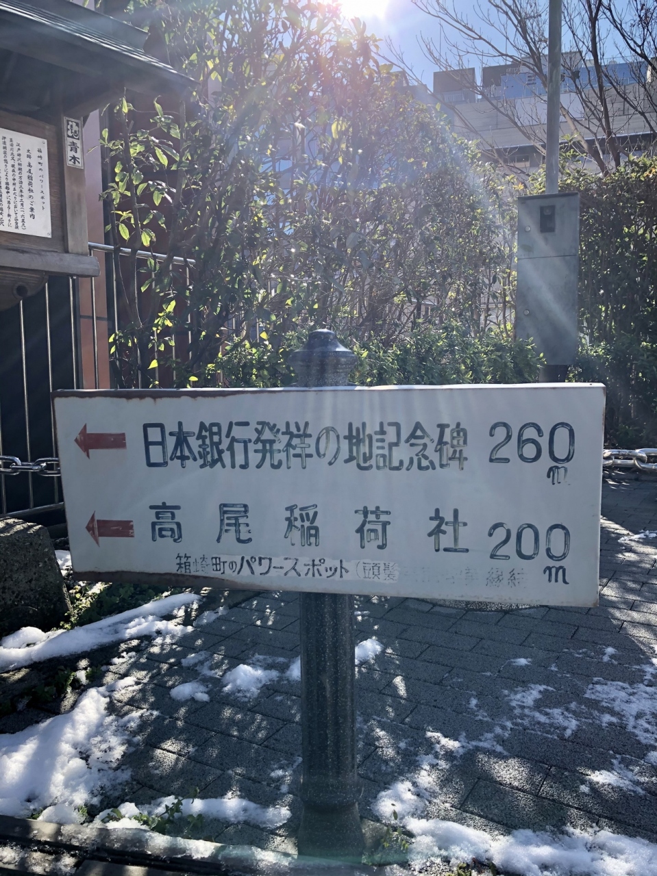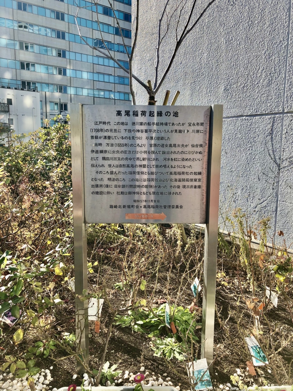 スマホのナビがイカれてて水天宮、茅場町、人形町界隈を彷徨い歩く私の前に現れた「高尾稲荷神社」の由緒書き。