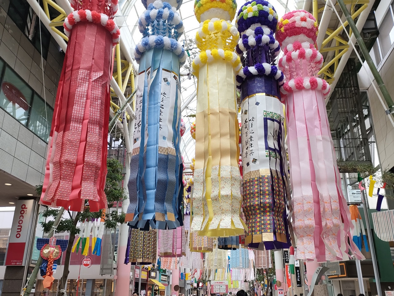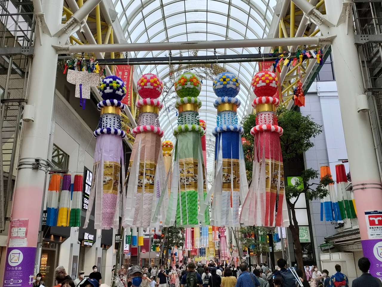 仙台の七夕祭りのメイン会場の一つで、仙台駅からは700mほど離れた商店街です。