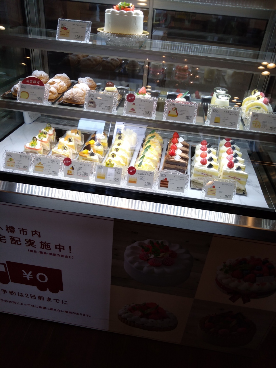 小樽駅のすぐそば。信号わたってこじんまりとお店はあります。イートインできるものもあります。あと生のケーキが種類豊富。カットケーキは東京とかではお目にかかれないので。シュークリームがここの限定商品となっている。