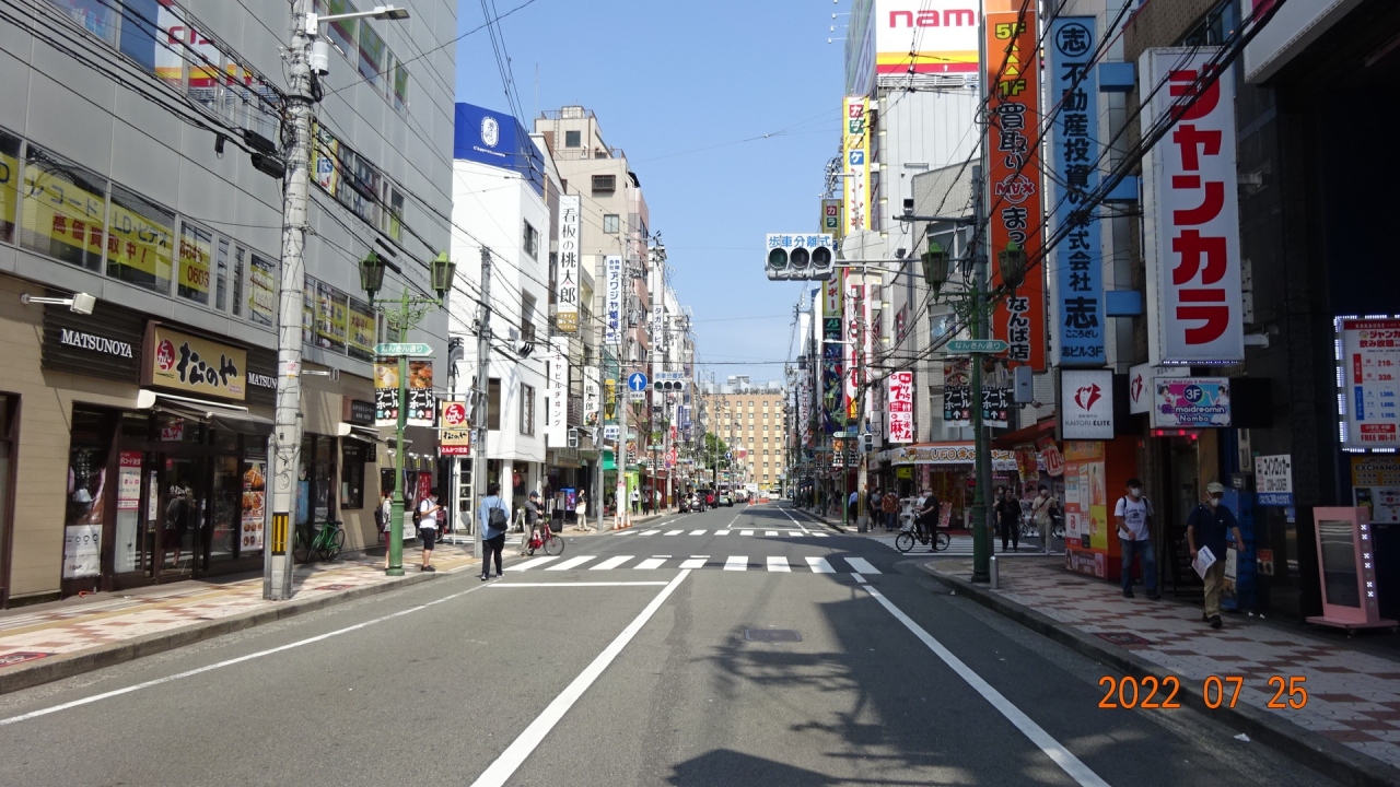 なんさん通りを通って黒門市場へ、なんさん通りを通って日本橋の電気街へ。便利な商店会の通りです。