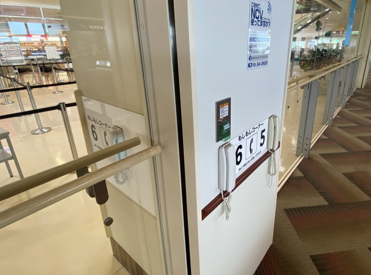 あまり個性がない地方空港という感じですが、一般エリアと制限エリア(保安検査後)で通話ができる「もしもしコーナー」というサービスがあるのが面白いと思いました。ガラス壁1枚隔てて最後まで別れを惜しむ人のための設備のようですが、スマホ普及した現代でどれだけニーズがあるのかは謎ですが・・・