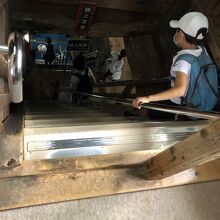 お城の階段は昔のまま?とても急です。両脇にステンレスの手摺りがありますが息が切れます