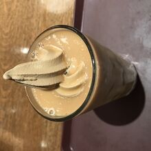 カフェオレフロート、小さい方でも結構ボリュームがあります。モカソフトクリームが載っており、スイーツ欲と喉の渇きを両方満たせますのでおすすめ。