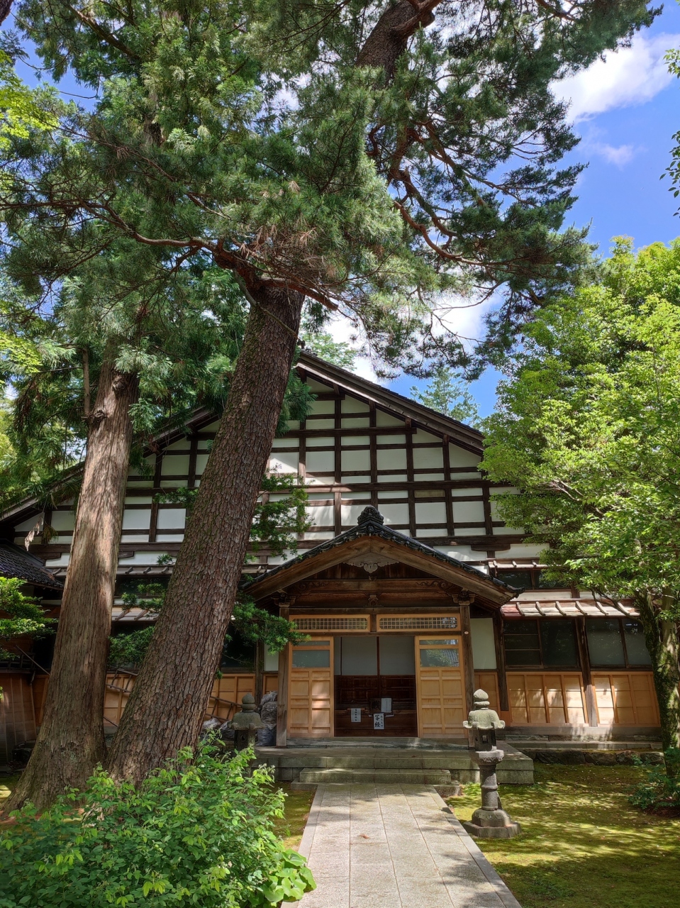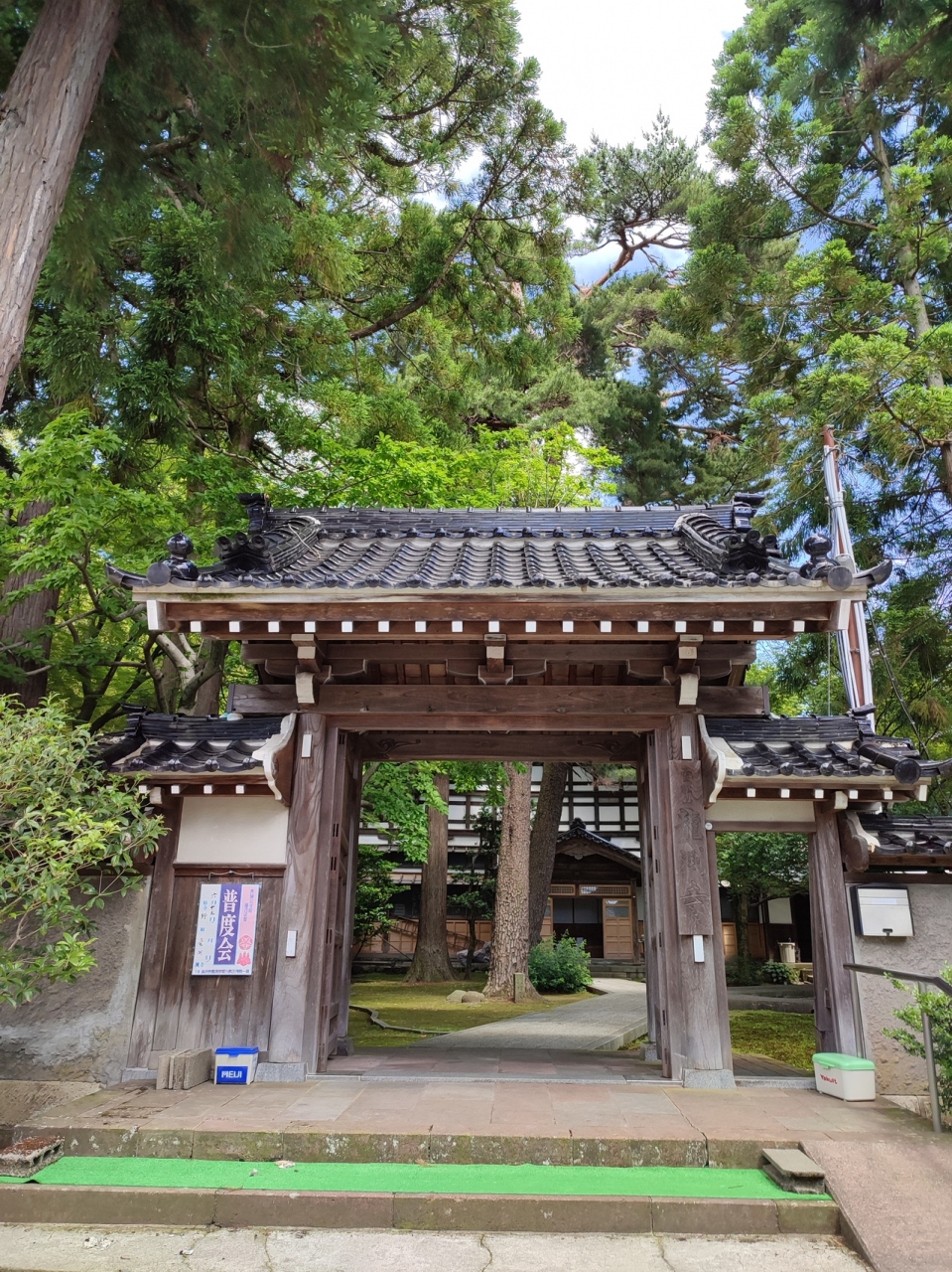 金沢市の繁華街の南側の犀川を超えたエリアがお寺が数多く集まっており、その中の一つです。前田利家の家臣の近藤善右衛門長広が建立したそうです。本堂はまあ割と普通な感じですが、寺全体は、金沢市の保存樹林だそうで、実際に緑が豊かな印象でした。