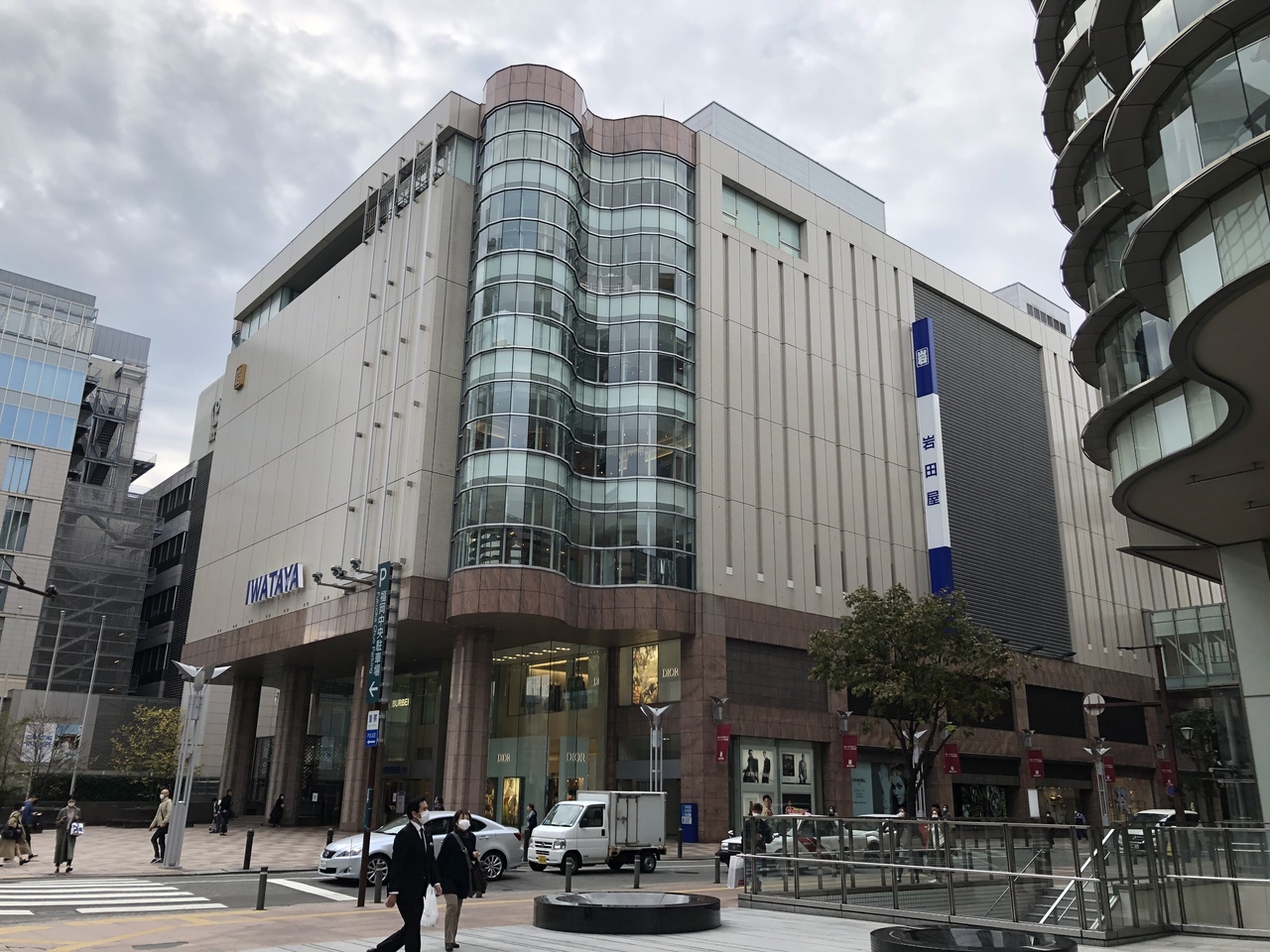 福岡天神の天神西通りに面したところにある九州最大の百貨店。宝暦4年(1754年)、福岡に岩田屋呉服店を開いたのが始まりとされる老舗百貨店であり、昭和11年(1936年)に開業したターミナルデパートとしての歴史を持ち、天神の発展を支えてきた商業施設。しかし、経営悪化から伊勢丹傘下に入り、さらに伊勢丹の三越との統合後、2010年に福岡三越と合併し、現在は三越との棲み分けを図りながら現在に至っています。伊勢丹風のデザインも見られるものの、どの年齢層からも支持されるフロア作りとなっており、建物も比較的新しいので天井も高く、広々しています。雑貨や化粧品、リビングなど、福岡市内の百貨店を圧倒する品揃えで、さらに地下の鮮魚コーナーは卸売市場直営だけあって評価も高い。