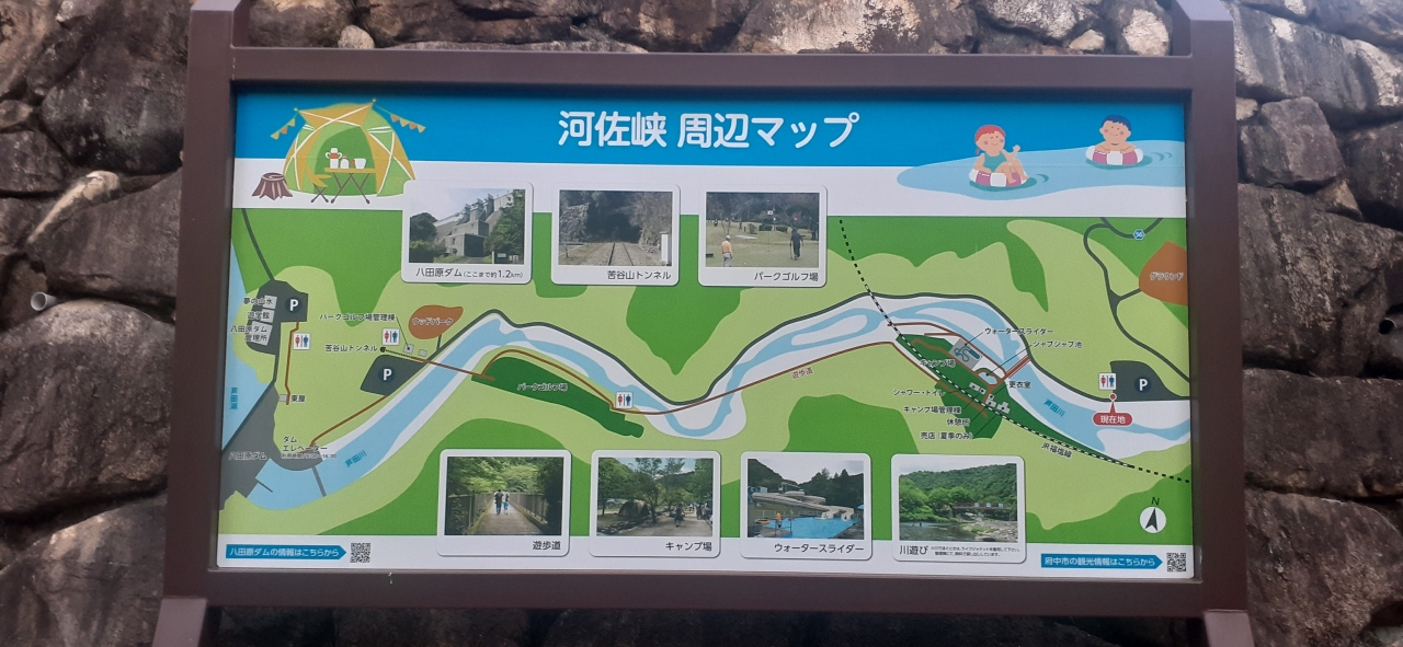 JR河佐駅から歩いて10分ほど。「峡」というより川原です