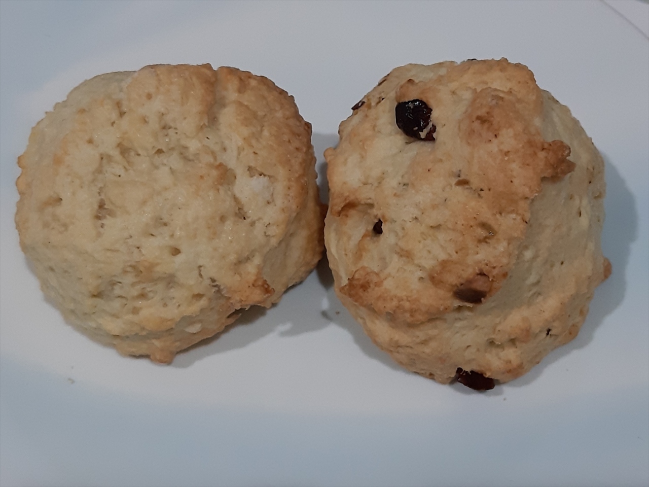 私は初めてだったので、まずはシンプルなプレーンのスコーン、それにレーズン入りも一つお買い上げ。