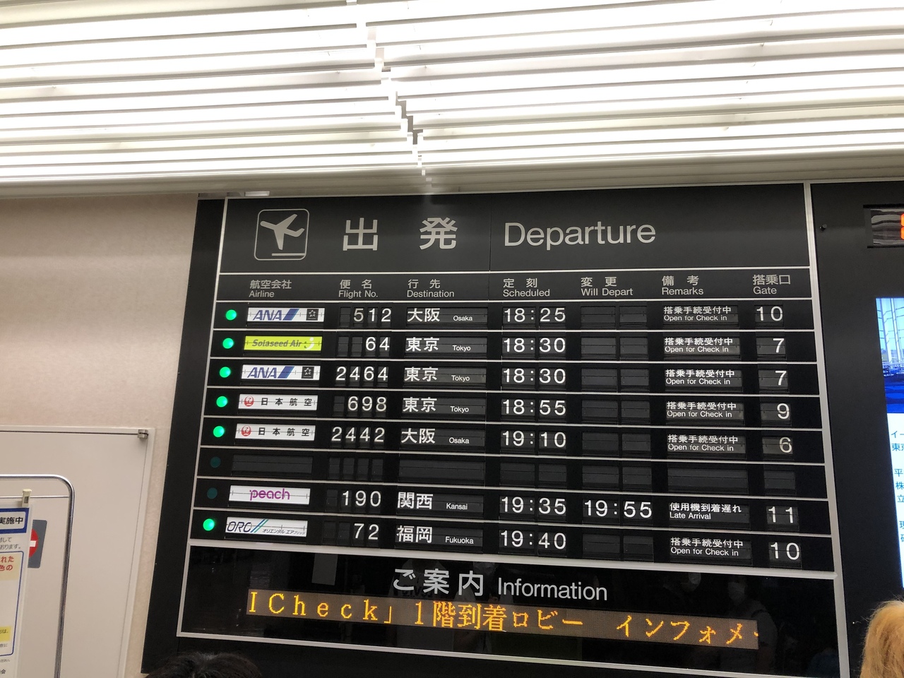 国内線は、JAL、ANA、ソラシド、ピーチ、ジェットスター、オリエンタルブリッジが就航。東京、大阪、名古屋、福岡、那覇などと結ばれており、鉄道では時間のかかる福岡便もダブルトラックで、便数が多い。、