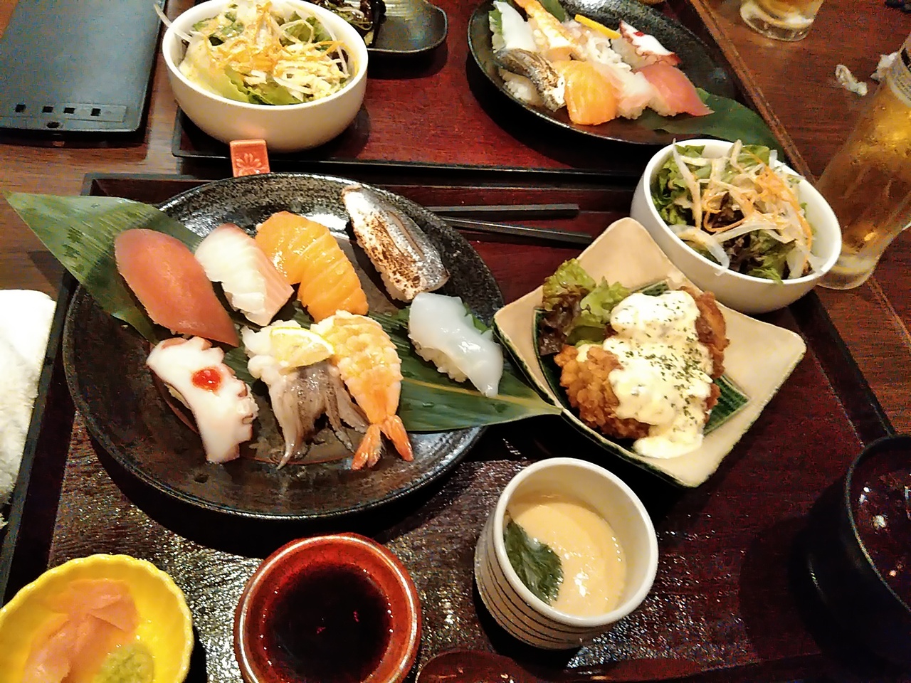 ハービスプラザ地下2階、旬菜とお酒あんばいです。昼食を食べないまま、食事ができるお店を探し始めたのが夕方だったので、定食を食べられるお店はもうないだろうと諦めていたときに見つけました。ありがたかったです。入った時間が良かったのか、他のお客さんがほとんどいらっしゃらなかったので、テーブル席をゆったりと使うことができました。